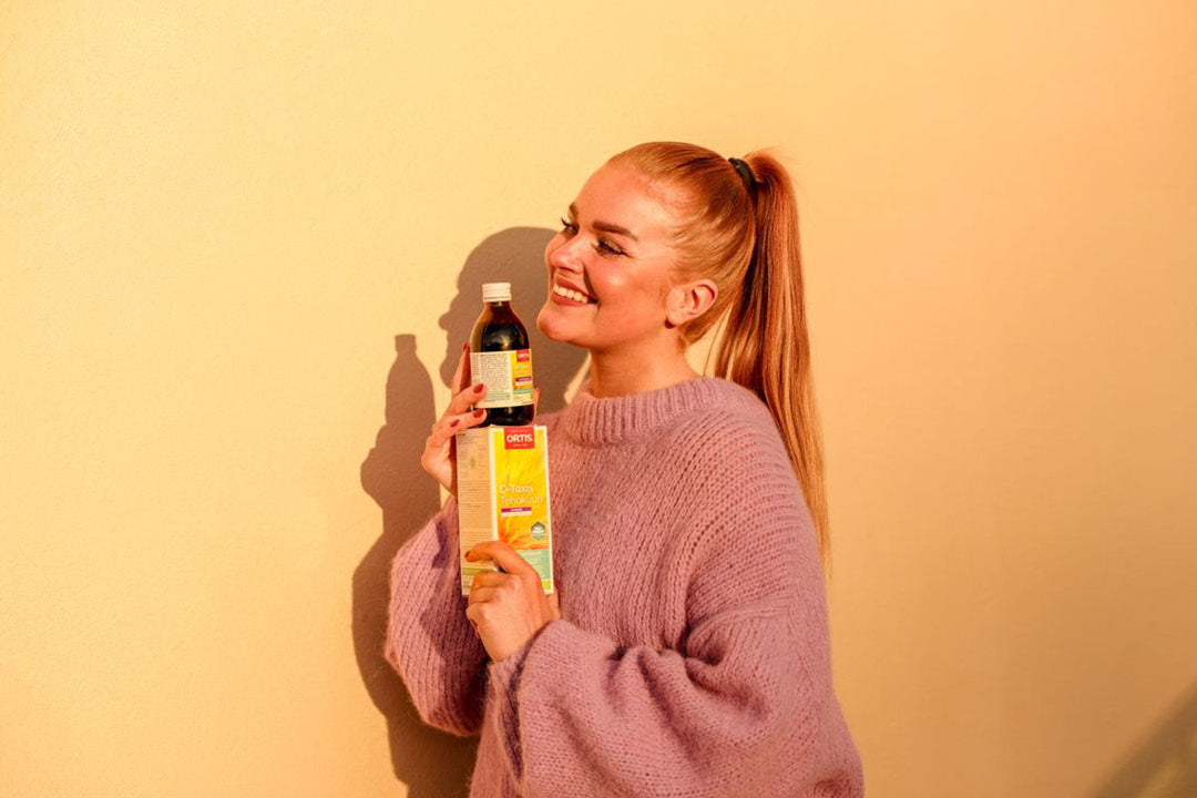 Naurava ihminen esittelee Ruohonjuuren D-toxis puhdistukuuria.