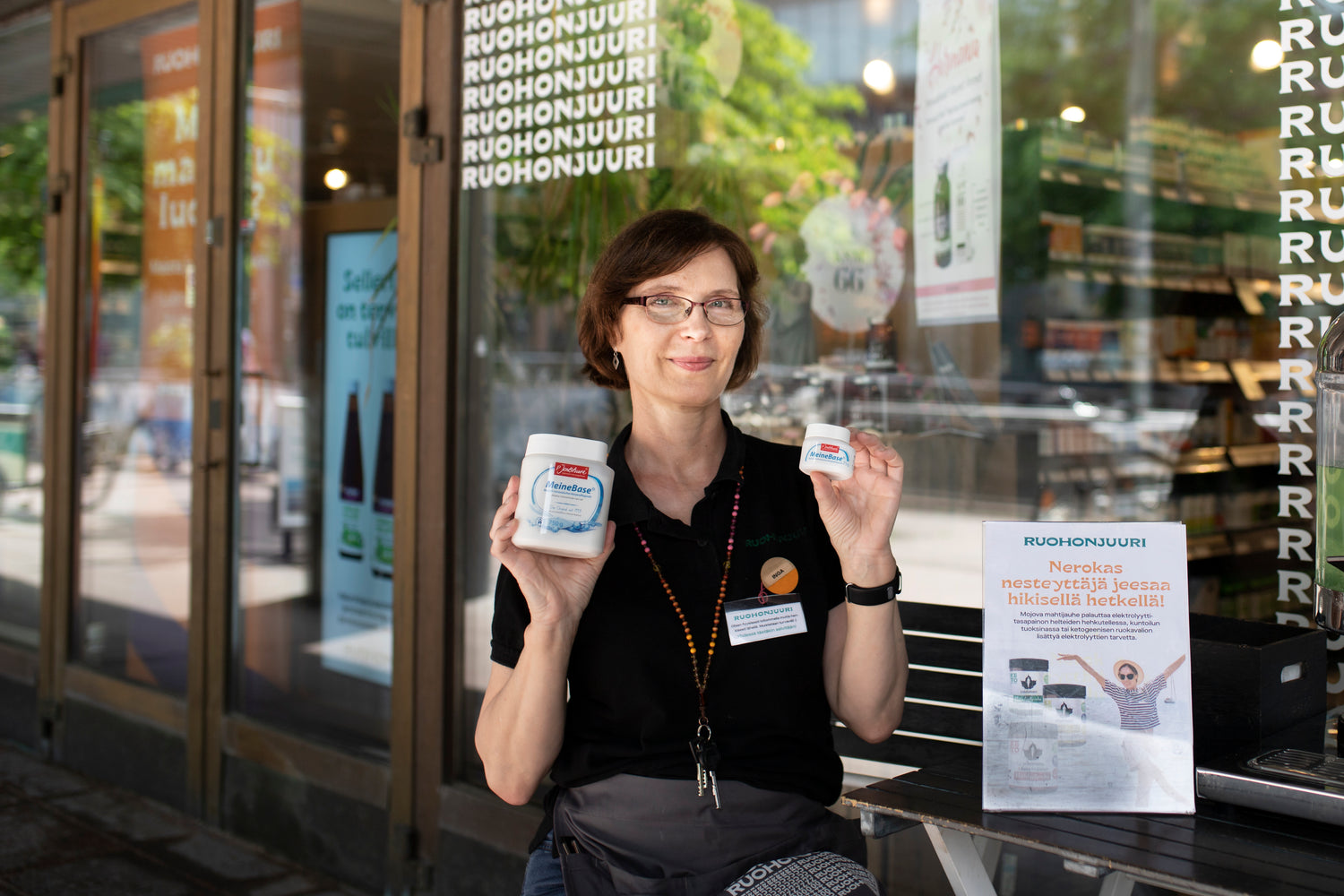 - Sen käyttökin on helppoa: kämmenelle pieni määrä suolaa, vähän vettä ja lopuksi pesu. Jos laittaa vähemmän vettä, seoksesta tulee karkeampaa, jolloin sitä voi käyttää kuorintan, Inga opastaa.