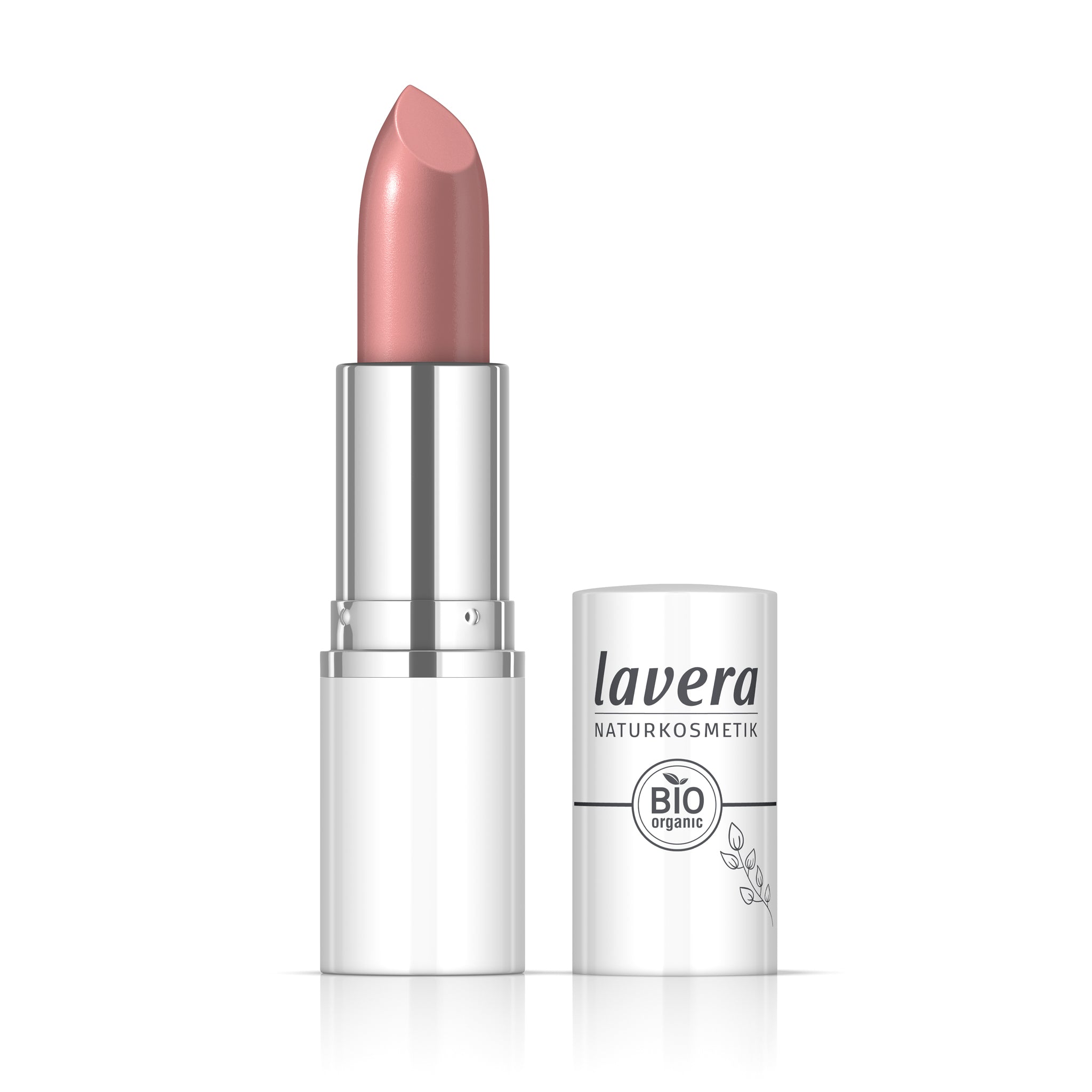 Lavera Cream Glow Lipstick huulipuna sävynään Retro Rose 02 luo kauniin silkkisen lopputuloksen ja tuntuu mukavalta huulilla, sillä se ei kuivata niiden herkkää ihoa.