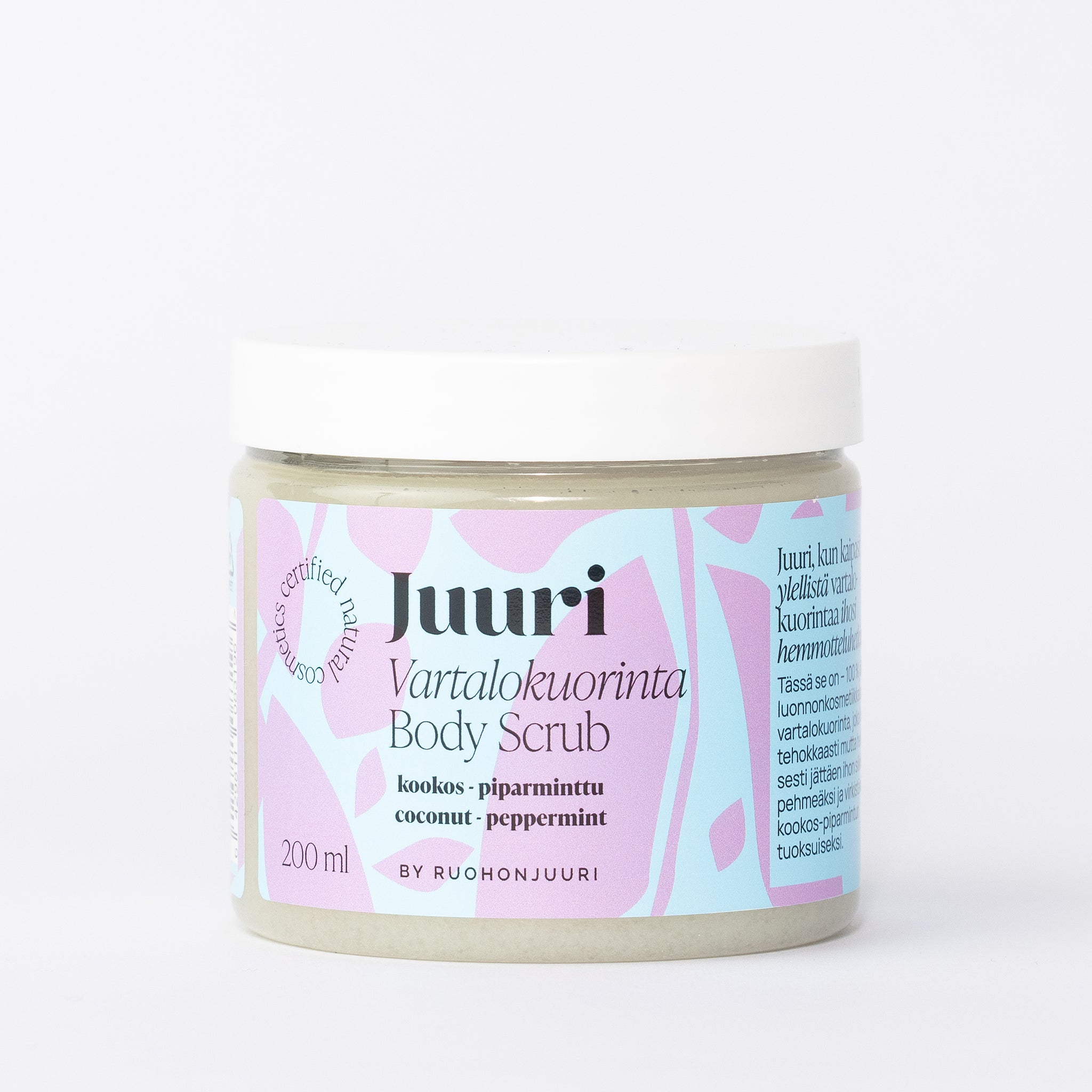 Juuri, kun kaipasit ylellistä vartalokuorintaa ihosi hemmotteluhetkiin. Juuri Vartalokuorinta saa aikaan silkkisen pehmeän ihon ja ihastuttaa täyteläisellä koostumuksellaan sekä virkistävän raikkaalla kookoksen ja piparmintun tuoksullaan - sopii normaalille ja kuivalle iholle.