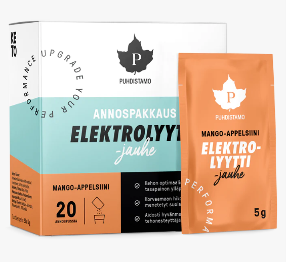 Puhdistamon elektrolyyttijauhe panee puhtia hikisimpiinkin treeneihin ja siinä maistuu maistuu mehukas mango ja aurinkoinen appelsiini. Näppärät annospussit on helppo kuljettaa mukana ja huolehtia elektrolyyttitasapainosta missä vaan!