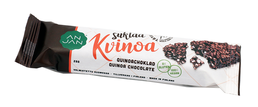 Anjan Luontoherkun quinoa-suklaa (kvinoasuklaa) on rouheisen rapsakka tuttavuus, joka sopii oikein oivallisesti myös vegaanisiin ja gluteenittomiinkin herkkuhetkiin. Mojovan maukas kvinoasuklaa tuo käden käänteessä puhtia päivään ja se onkin erinomainen eväs mutusteltavaksi esimerkiksi ennen treenejä tai vaikkapa metsän siimeksessä samoillessa.