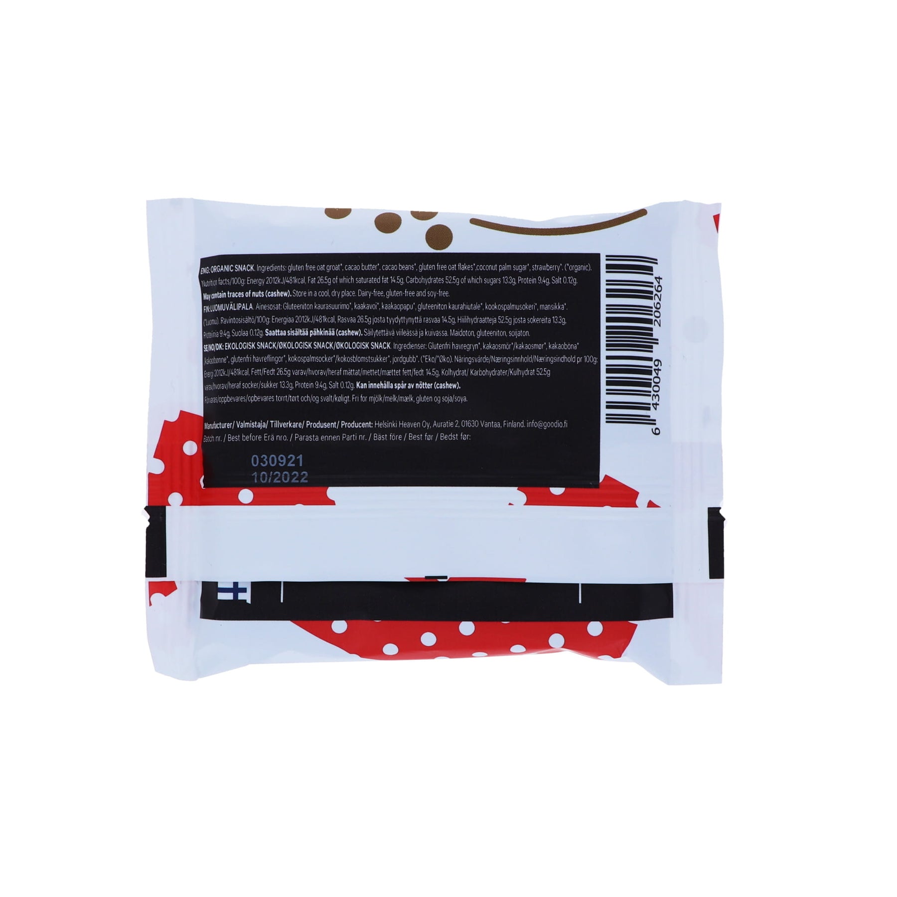 Lempeää kauraa ja makeaa mansikkaa, ripauksella luomusuklaata - vieläpä gluteenittomana! Mainio välipala nakkelee nälän loitolle ja makeanhimon matkoihinsa ilostuttaen mieltä ja hellitellen kieltä.
