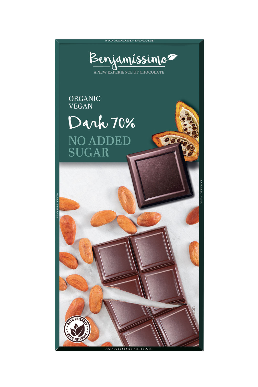 Benjamissimo tumma 70 % on tulvillaan makua ilman lisättyä sokeria - makeutettu erytritolilla, joka on sokerin välttäjien suosikkimakeuttaja!