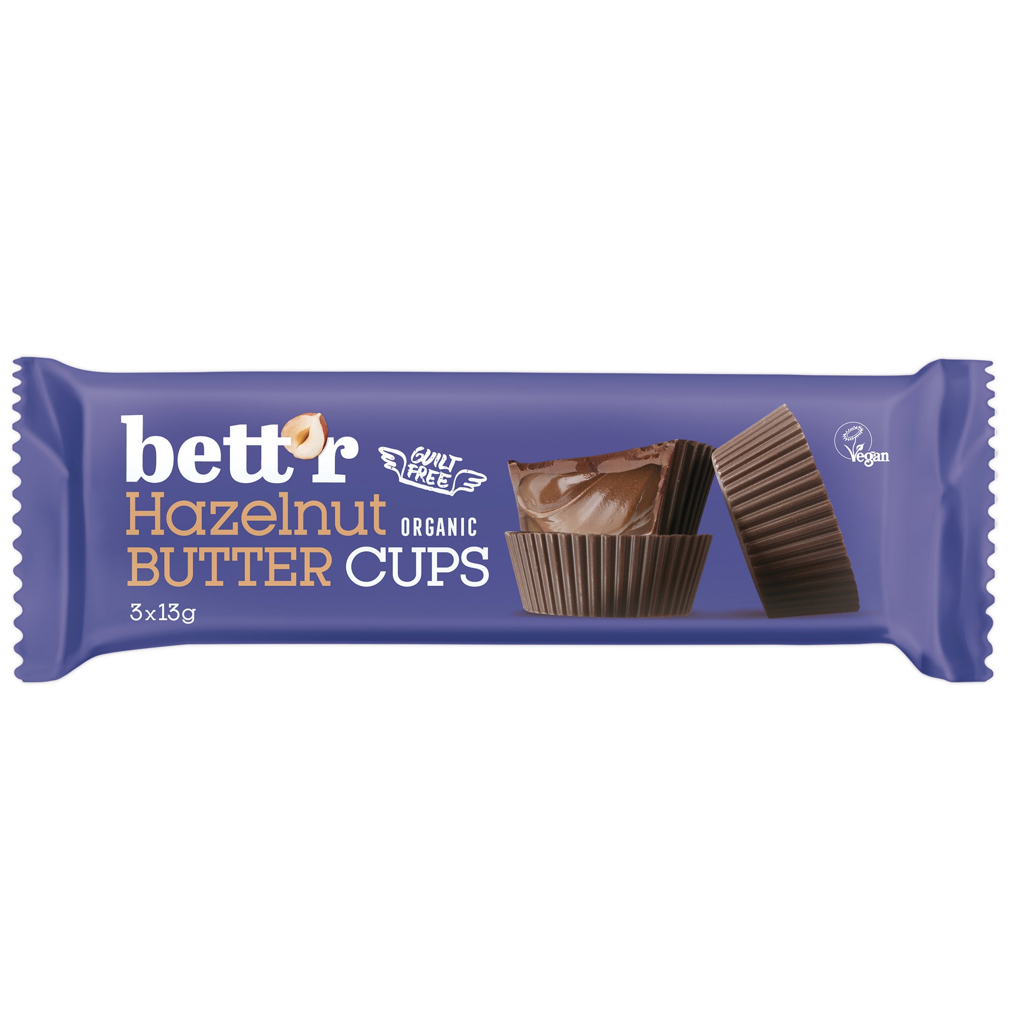 Bett'r valloittavassa luomulaatuisessa suklaakupissa yhdistyvät täyteläinen vegaaninen suklaa sekä pehmeä hasselpähkinävoitäyte. Pakkauksessa kätevästi kolme herkullista suklaakuppia makeanhimon tyydyttäjäksi. Ei sisällä valkoista sokeria tai keinotekoisia makuaineita.