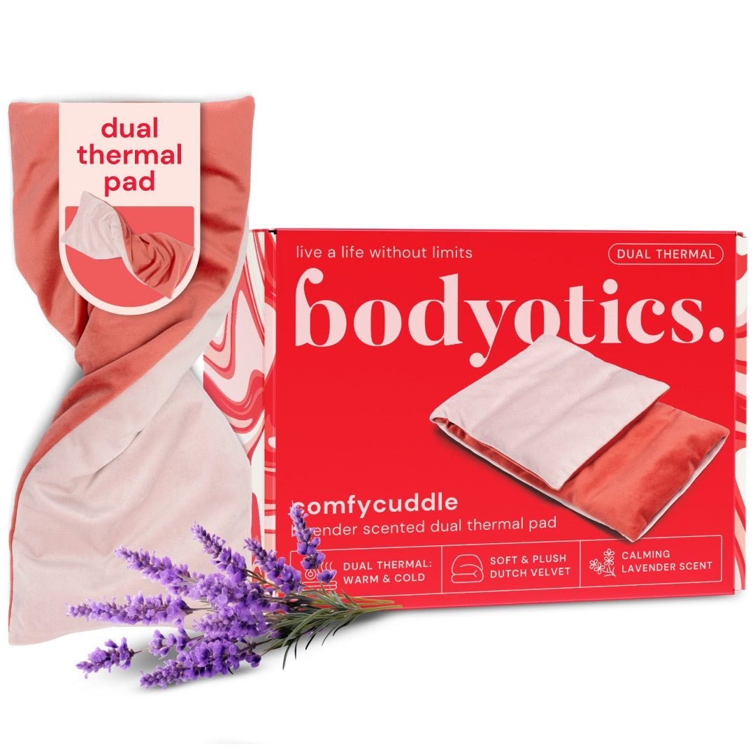 Bodyotics Comfycuddle-tyyny tarjoaa ihanaa lämpöä ja rentoutumista. Voit lämmittää sen mikrossa tai viilentää pakastimessa, jolloin se mukautuu täydellisesti tarpeisiisi. Laventelin tuoksu rauhoittaa mieltä. Comfycuddle -tyyny tarjoaa rauhoittavia hetkiä ja helpotusta kehon kiputiloihin.