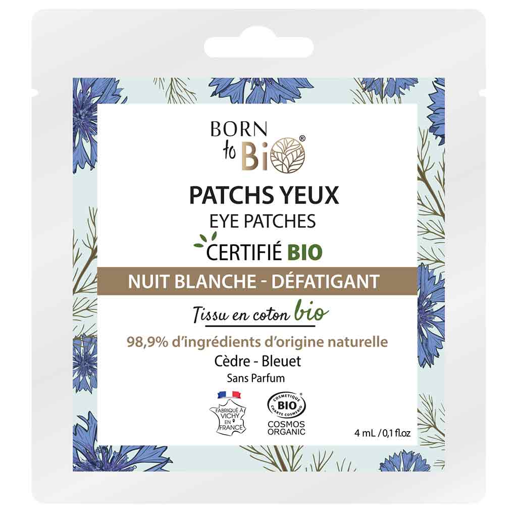 Born to Bio Sleepless Night Silmänympärysnaamio tai tarkemminkin naamiot ovat kertakäyttöisiä ja valmistettu GOTS-sertifioidusta luomupuuvillasta. Silmänympärysnaamiot häivyttävät väsymyksen merkkejä, kuten tummia silmänalusia ja turvotusta. Silmänympärysten virkistymisestä voi nauttia ilman lisättyjä hajusteita.