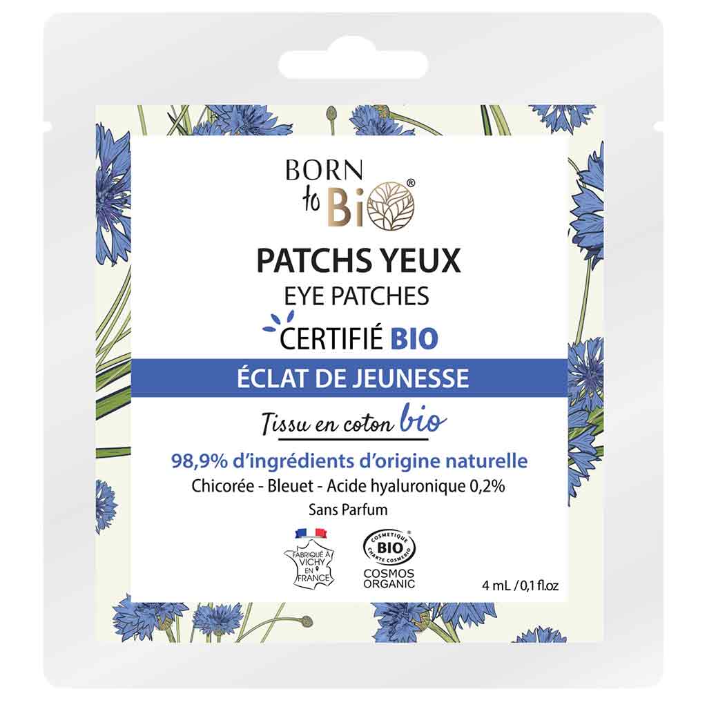 Born to Bio Youthful Glow Silmänympärysnaamio tai tarkemminkin naamiot ovat kertakäyttöisiä ja valmistettu GOTS-sertifioidusta luomupuuvillasta. Silmänympärysnaamiot tuovat raikkautta ja eloa ilmeeseen häivyttämällä pieniä juonteita silmänympärysiholta. Silmänympärysnaamiot ovat hajusteettomia.