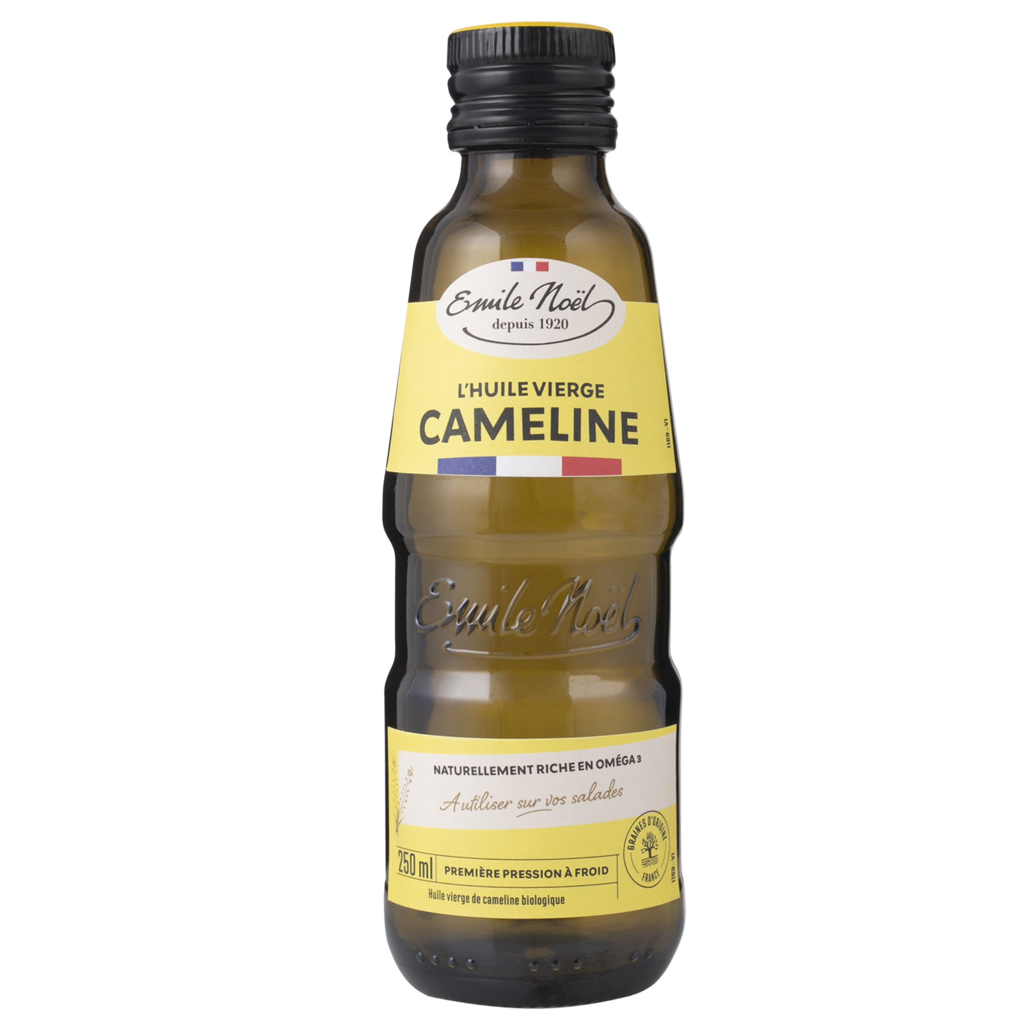 Emile Noel -sarjan luomulaatuinen camelinaöljy sisältää Omega 3 -rasvahappoihin kuuluvaa alfalinoleenihappoja 39% (noin 80 kertaa enemmän kuin oliiviöljyssä) ja 15% Omega 6 -rasvahappoihin kuuluvaa linolihappoa.