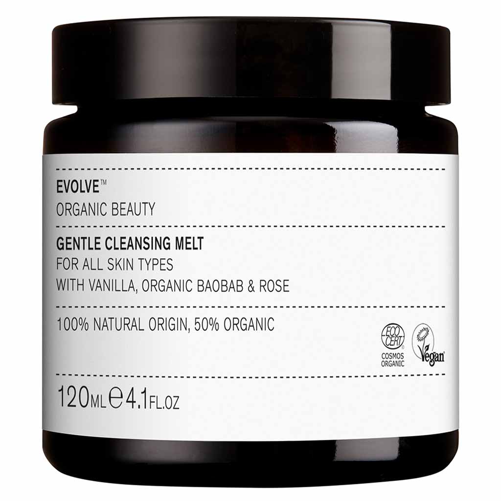 Evolve Organic Beauty Gentle Cleansing Melt on pehmeän koostumuksensa ansiosta erinomainen puhdistusbalmi normaalille ja kuivalle iholle. Luonnolliset sokeri-uutteet yhdessä veden kanssa muuttavat kirkkaan balsamin maitomaiseksi koostumukseksi, joka puhdistaa ihon jättäen sen rauhoitetuksi ja kosteutetuksi. Ravitseva baobaböljy rauhoittaa ja kosteuttaa ihoa.