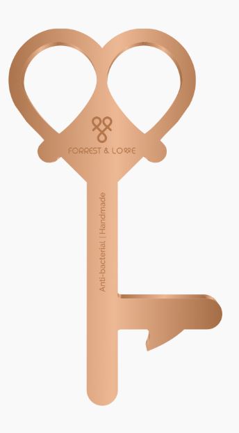 Forrest & Love kuparinen avaimenperä on oivallinen apuri vältellessä pöpöjä julkisilla paikoilla. Kuparilla on luonnostaan antibakteerisia ominaisuuksia ja tämän avaimenperän avulla saat näppärästi painettua vaikkapa hissinnappeja ilman, että sinun tarvitsee koske niihin käsin.