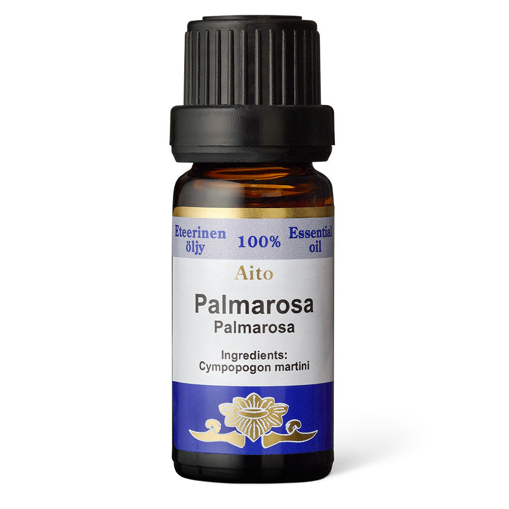 Palmarosa on kukkaistyylinen hienostunut tuoksu, joka vahvistaa ja elvyttää hermoston toimintoja sekä kohottaa ja keventää mielialaa. Voimakkaasti antibakteerisena öljynä se tuhoaa viruksia ja bakteereja ja parantaa tulehtunutta ihoa. Se myös tasapainottaa talineritystä sekä parantaa vanhoja arpia ja katkenneita verisuonia.