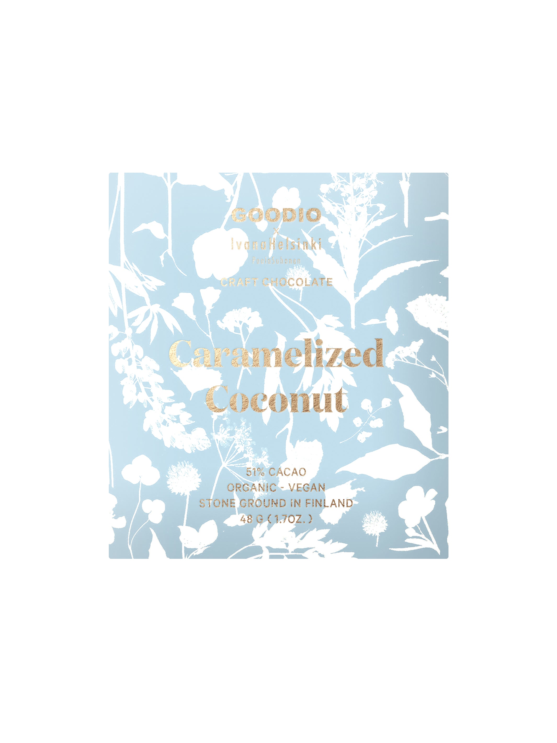 Goodion Caramelized Coconut -suklaa on täydellinen herkku kookoksen ystäville! Huikean herkulliset karamellisoidut kookoslastut sopivat saumattomasti yhteen suklaan kanssa luoden aurinkoisen makunautinnon.