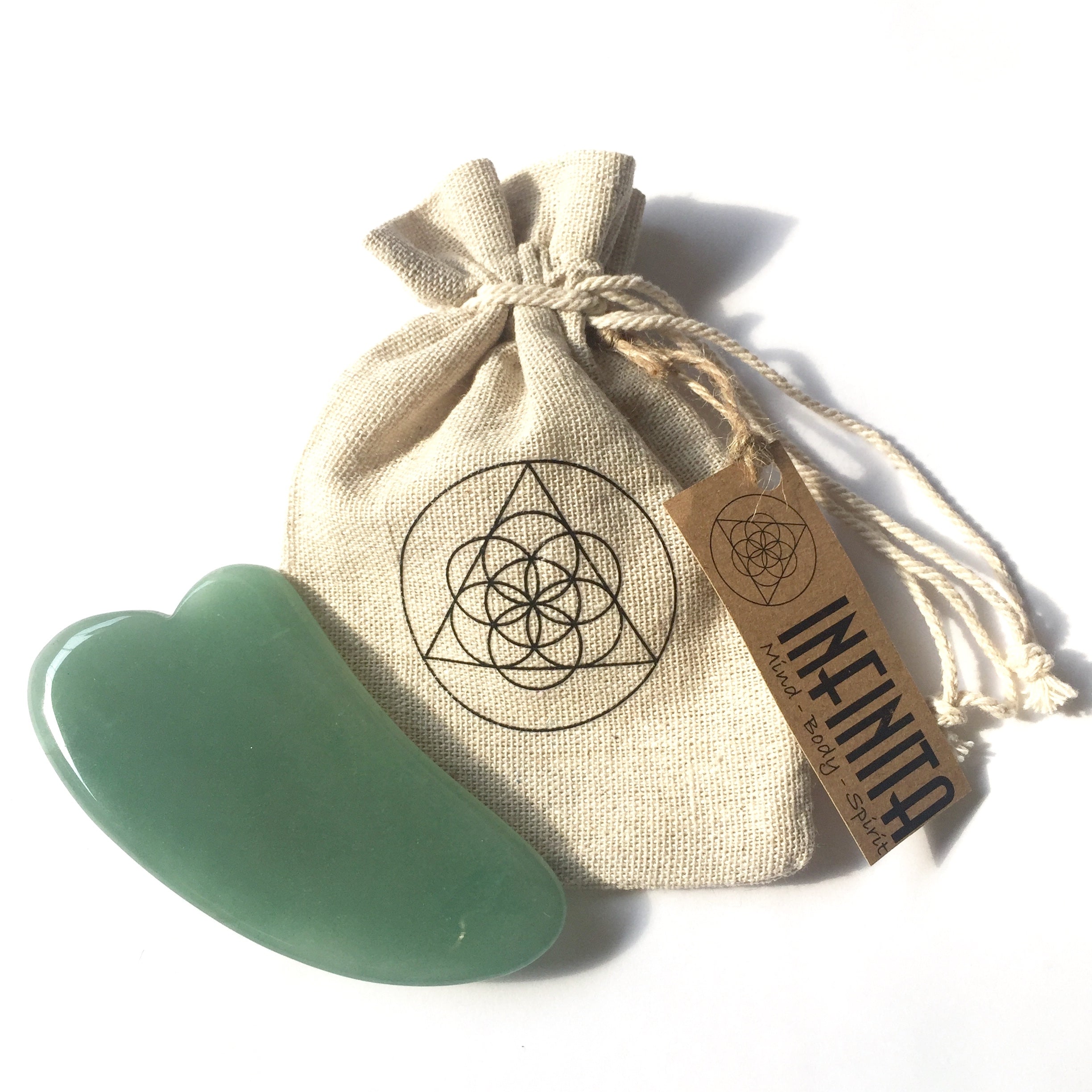 Tässäpä mitä mainioin tuote rentouttavaan hierontaan! Tämä kauniin vihreä Infinitan Gua Sha aventuriini -hierontalasta sopii erinomaisesti kasvojen ja vartalon hierontaan.