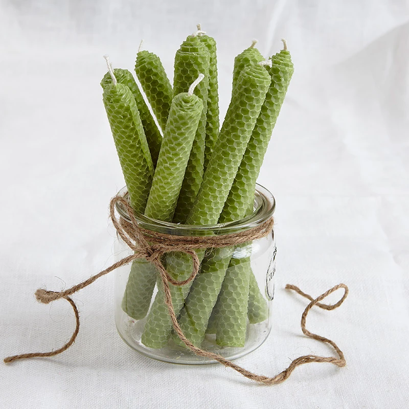 Mehiläisvahakynttilä vaaleanvihreä, 4 kpl
