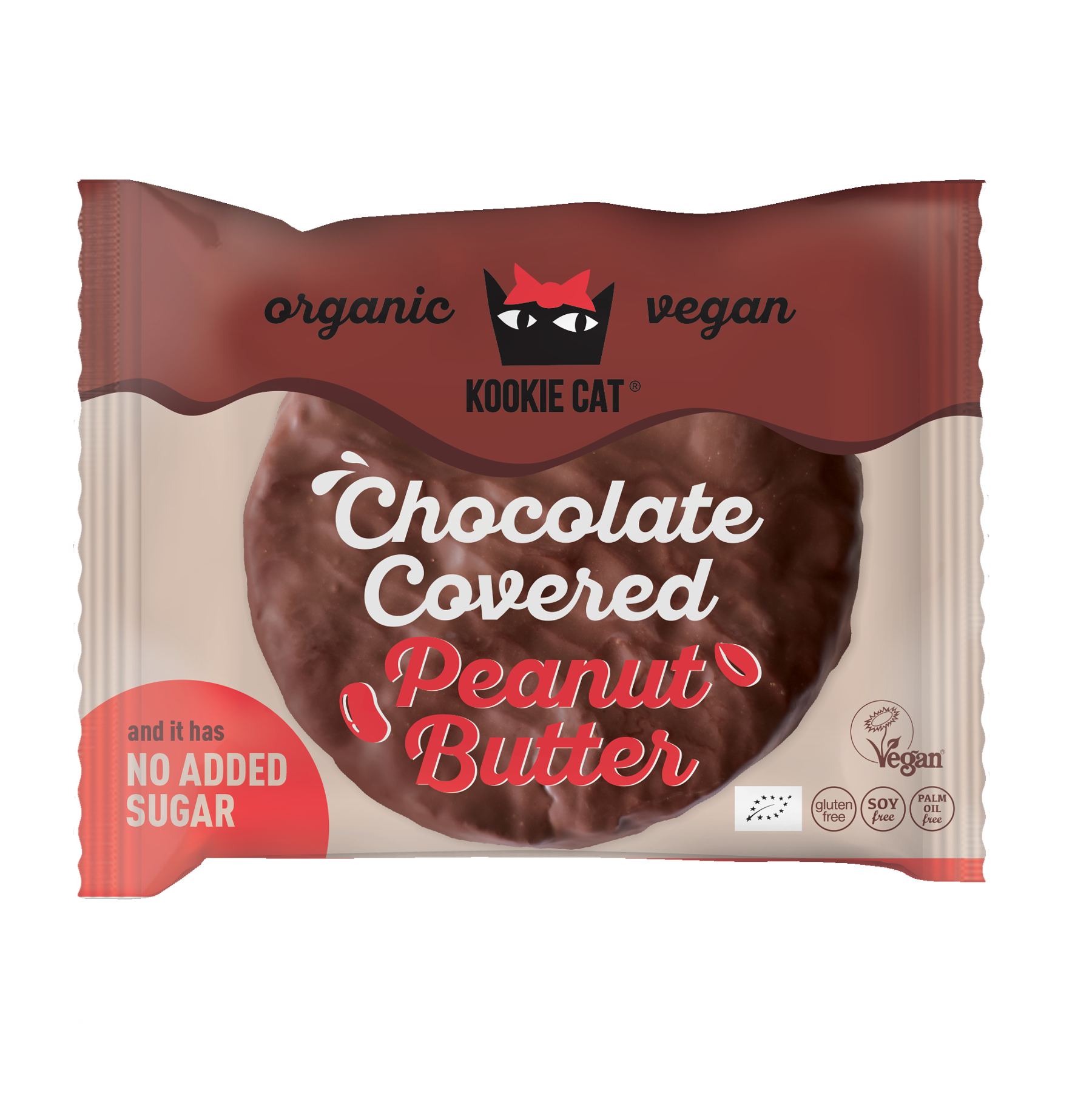 Vegaaninen ja gluteeniton Kookie Cat -keksi, joka on päällystetty herkullisella suklaakerroksella ja jonka runsas maapähkinän maku valloittaa. Mikä parasta, keksissä ei ole lisättyä sokeria. Nauti vaikka tien päällä tai herkuttele kotisohvalla.