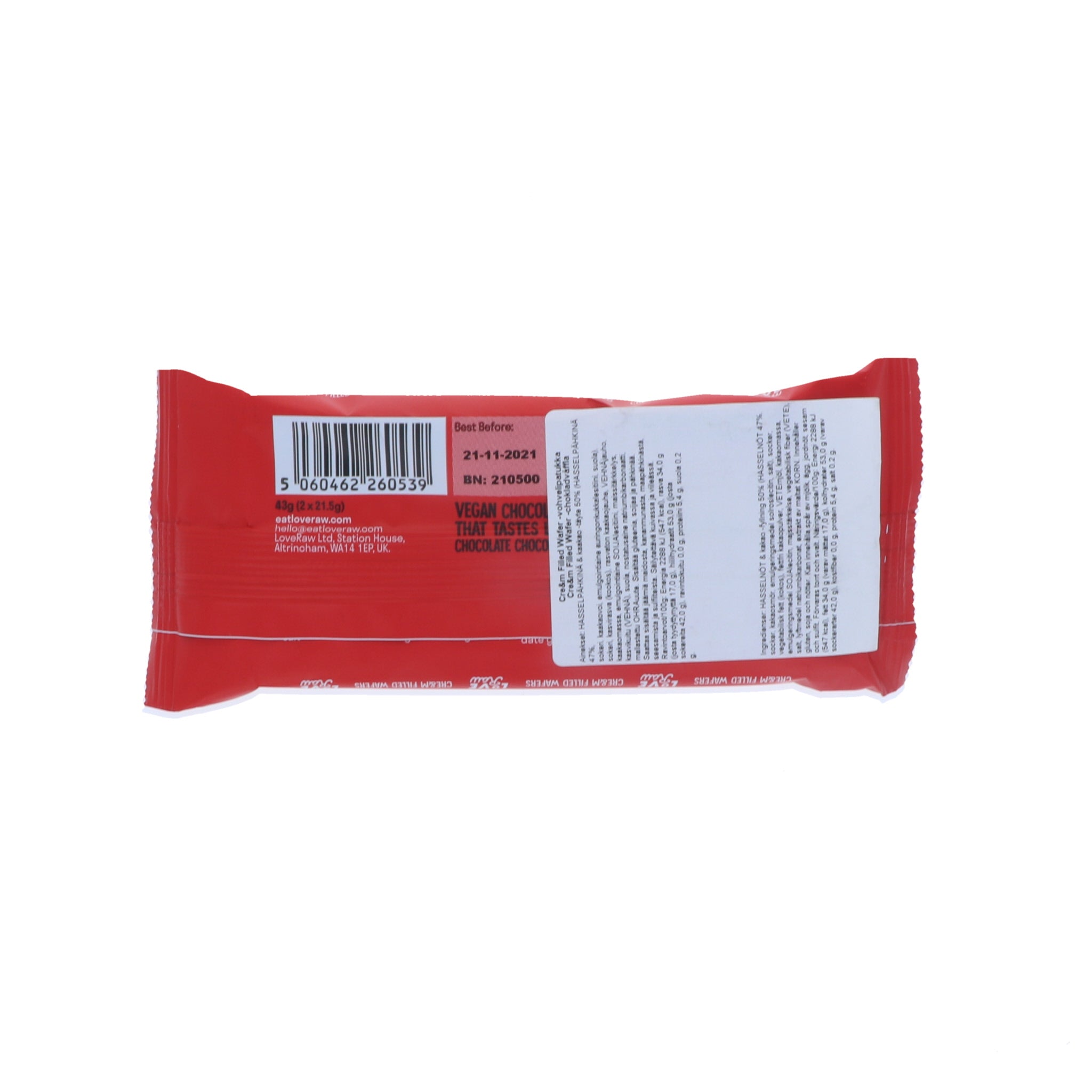 HASSELPÄHKINÄ & kaakao -täyte 50% (HASSELPÄHKINÄ 47%, sokeri, kaakaovoi, emulgointiaine auringonkukkalesitiini, suola), sokeri, kasvirasva (kookos), rasvaton kaakaojauhe, VEHNÄjauho, kaakaomassa, emulgointiaine SOIJAlesitiini, maissitärkkelys, kasvikuitu.