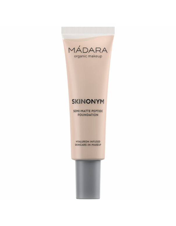 Madara SKINONYM SEMI-MATTE PEPTIDE MEIKKIVOIDE #20 IVORY antaa meikille pitkäkestoisen, puolimattaisen ja keskipeittävän pohjan. Kevyt koostumus tuntuu aivan ihanalta iholla.