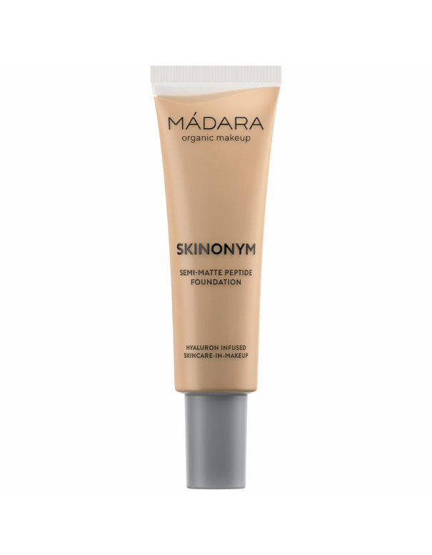Madara, SKINONYM SEMI-MATTE PEPTIDE MEIKKIVOIDE #40 SAND antaa pitkäkestoisen, puolimattaisen ja keskipeittävän pohjan meikillesi. Kevyt koostumus tuntuu lumoavan luonnolliselta iholla.