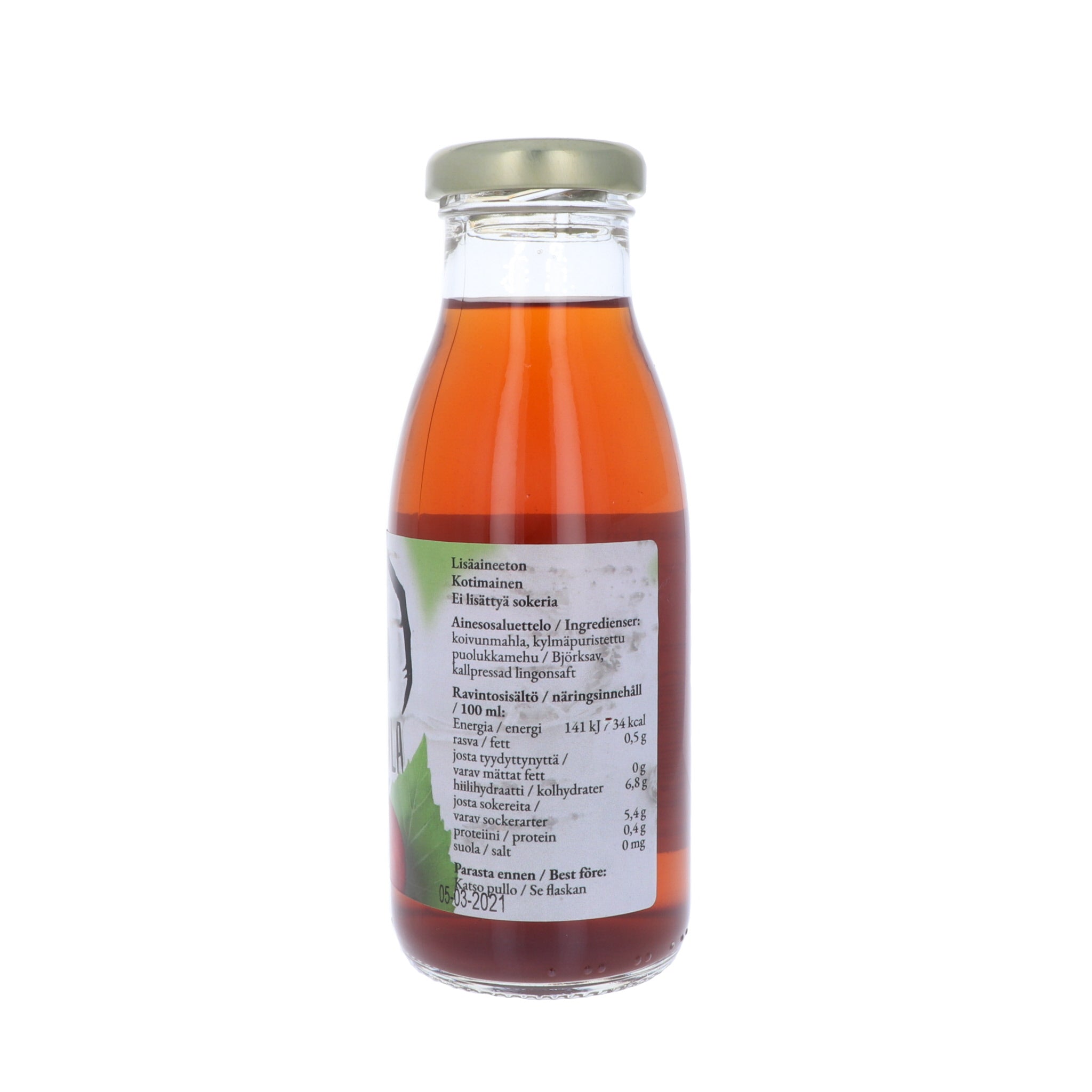 Kylmäpuristettua puolukkamehua ja koivunmahlaa samassa pullossa saa tosiaan janon sammutettua ja jalan taas nousemaan uutterammin. Molemmat kotimaisen luontomme rakkaat kasvit sisältävät lukemattoman määrään mahtiravinteita, jotka saavat elimistömme elävöittymään ja uudistumaan.