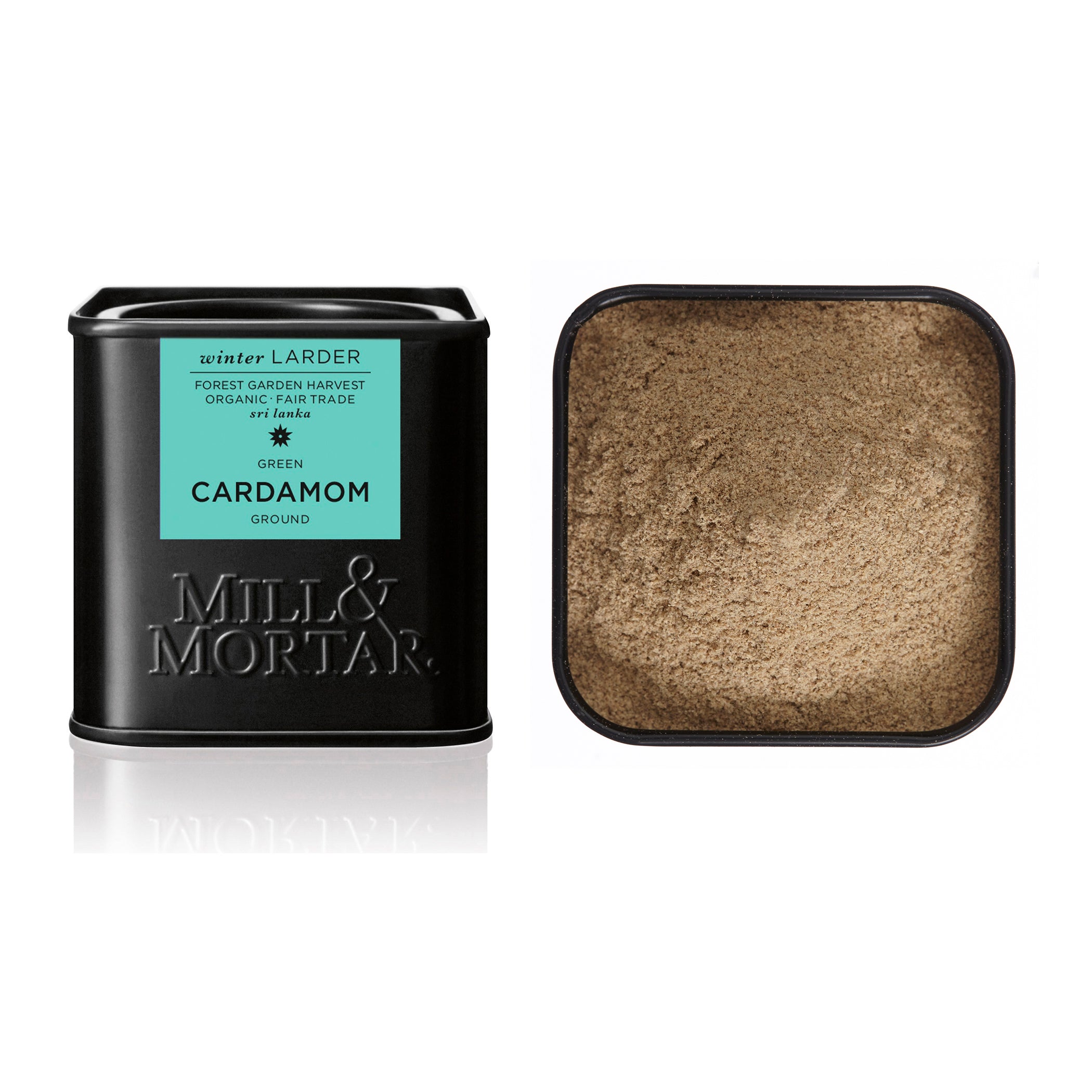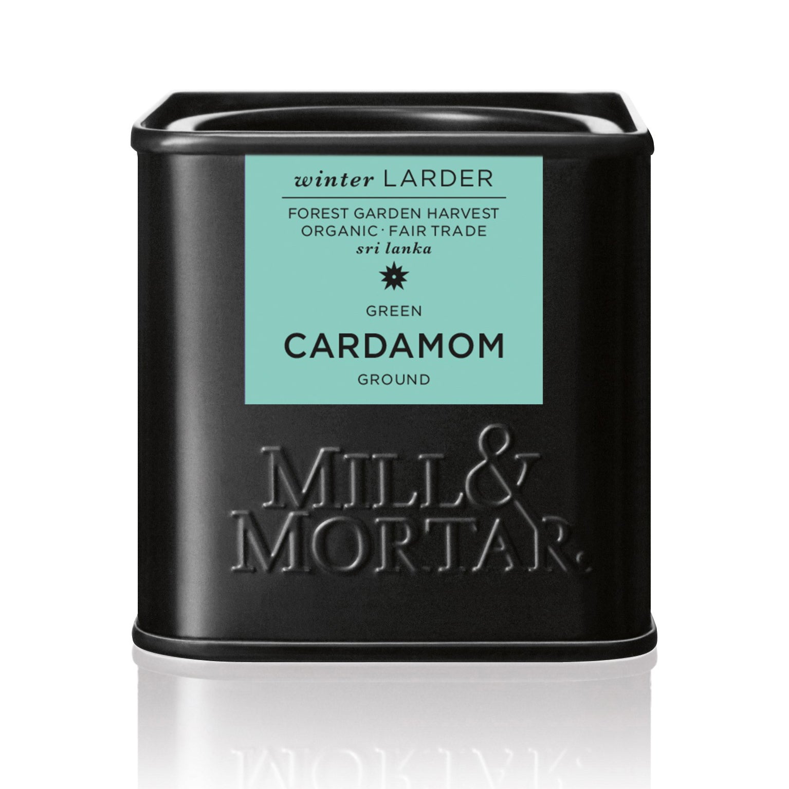 Mill & Mortarin jauhettu vihreä kardemumma, mausteiden kuningatar.