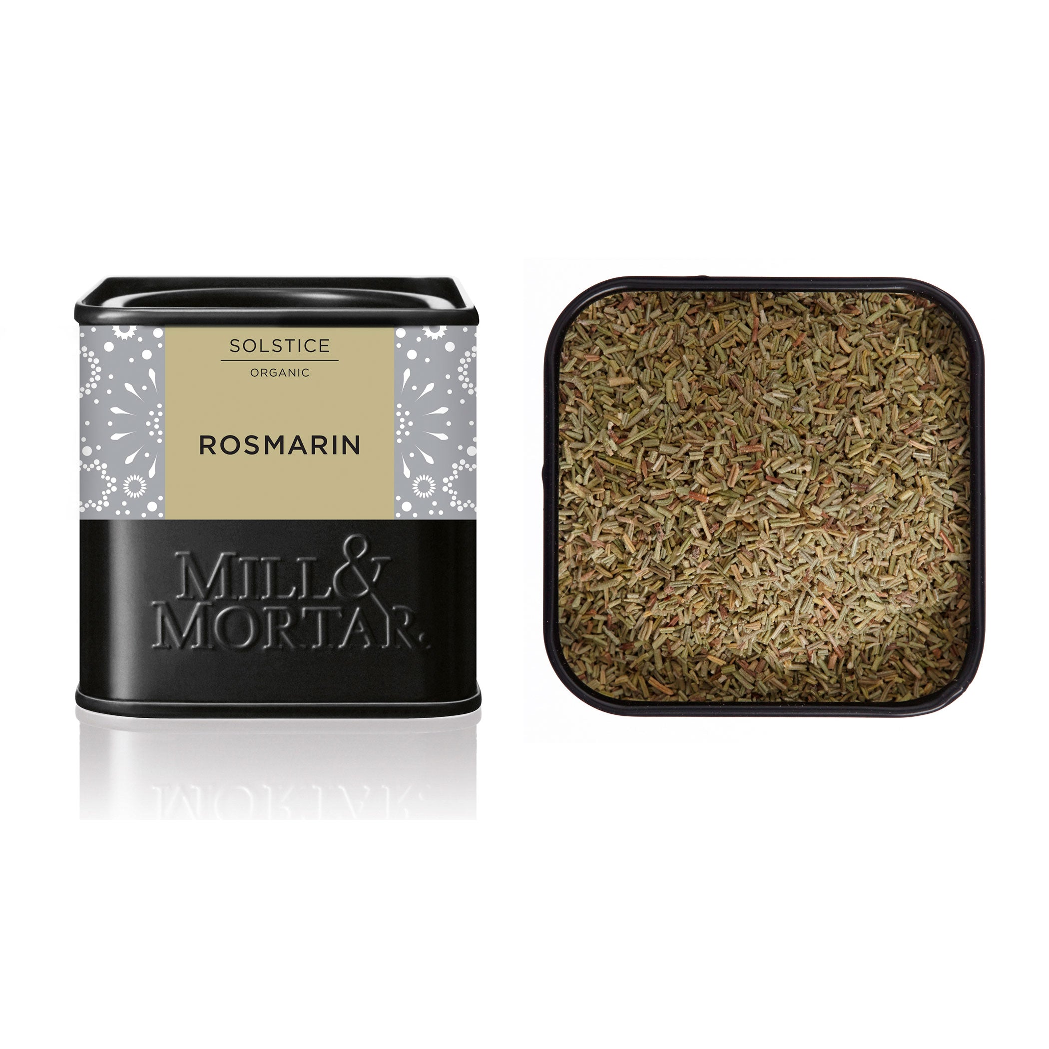 Mill & Mortar Rosmariini (Rosmarinus officinalis) sopii moneen ja toimii hienosti yhteen suolan, pippurin ja valkosipulin sekä sitruunan kanssa.