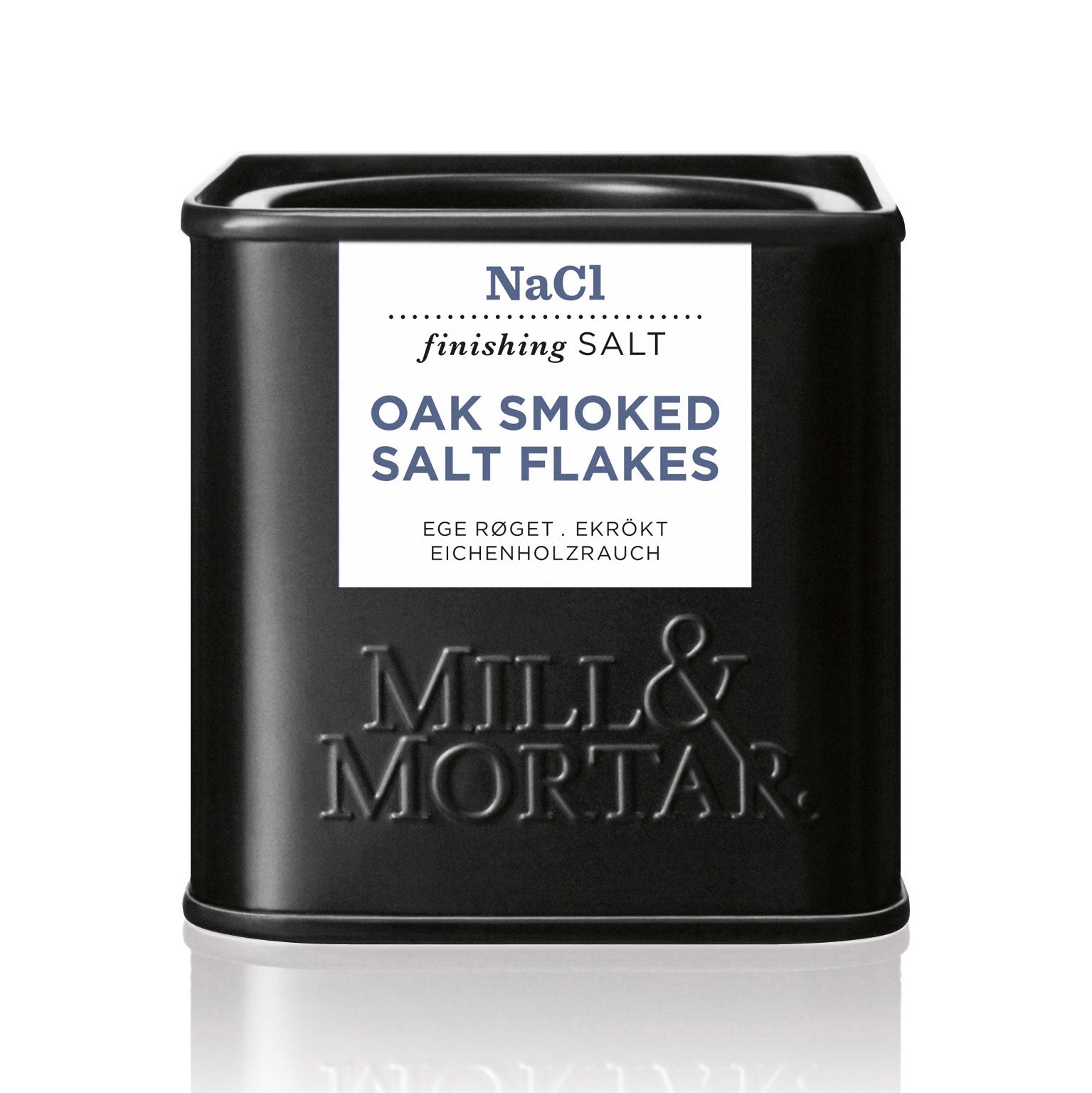 Mill & Mortar savusuolahiutaleet ovat peräisin Villenan, Espanjan, maanalaisista suolalähteistä. Käsin kerätyt suolahiutaleet kuivataan Alicanten tuulessa Välimeren auringossa. Tämän jälkeen suolahiutaleet asetetaan suljettuun kammioon ja savustetaan useiden viikkojen ajan palavan tammipuun kanssa. Savustettu suola sopii vaikka mihin, kokeile rohkeasti.