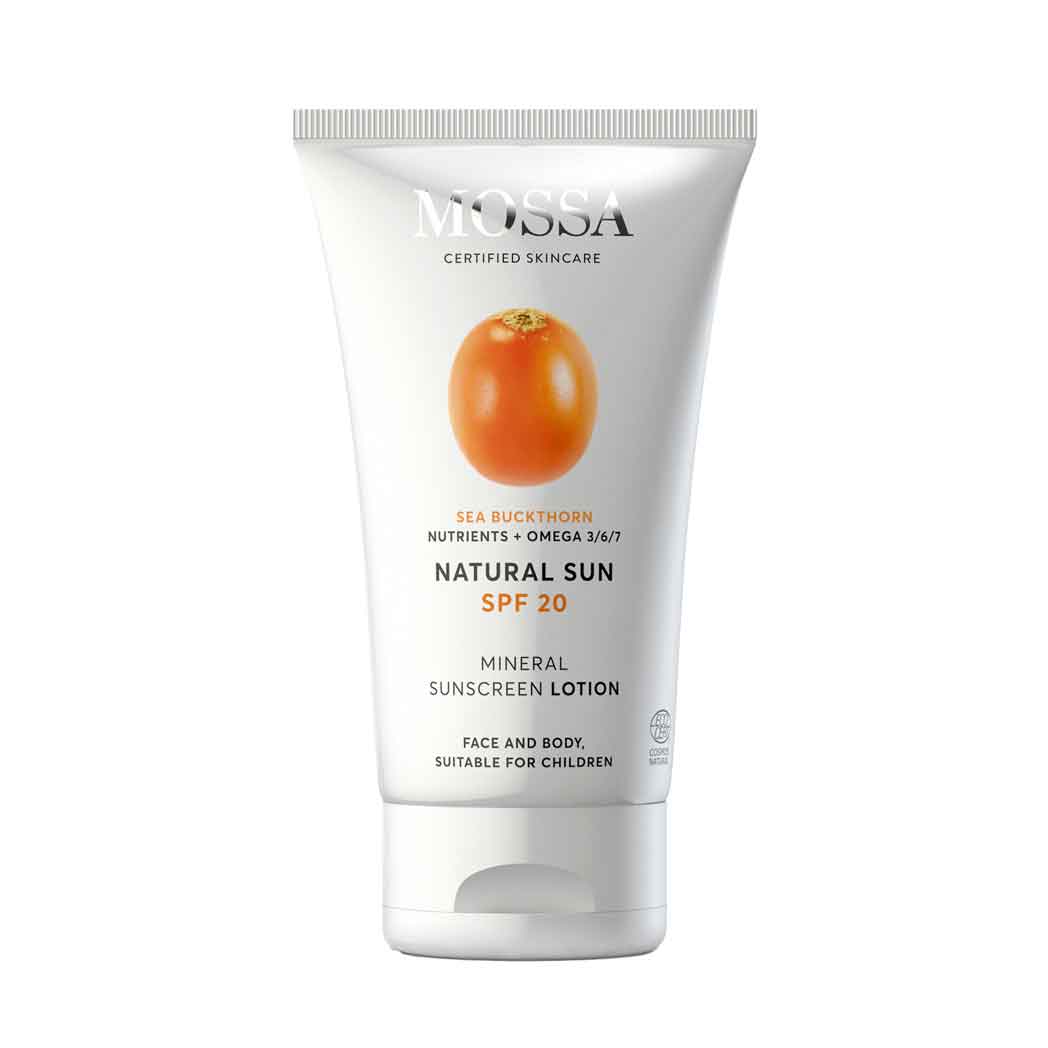 Mossan Aurinkoemulsio SPF20 on luonnonkosmetiikkalaatuinen aurinkovoide, jolla on suojakerroin 20. Täysin mineraalipohjainen ja turvallinen aurinkosuoja tarjoaa välittömän ja laajakirjoisen suojan haitallisia auringon UV-säteitä vastaan. Tässä aurinkovoiteessa kehuja ovat keränneet sen silkkiset ja kosteuttavat ominaisuudet. Mossa-sarjan aurinkovoide sisältää runsaasti betakaroteenia, omega-rasvahappoja, vitamiineja ja antioksidantteja. Mukana menossa keimailee myös ihoa hoitavista vaikutuksistaan tunnetuksi tullut tyrniöljy. Hyvin levittyvä, luonnollinen aurinkovoide jättää kauniin ja heleän lopputuloksen. Se sopii mitä mainioimmin koko perheelle ja myös perheen pienimmille. Mossan aurinkovoide sopii sekä kasvojen että vartalon iholle. Testaa ja tykästy toden teolla! Aurinkovoiteen käyttö: Levitä kauttaaltaan kasvoille ja vartalolle. Välitön auringon uv-säteiltä suojaava vaikutus. Levitä uudelleen ihon pyyhekuivauksen jälkeen. COSMOS NATURAL certified by ECOCERT