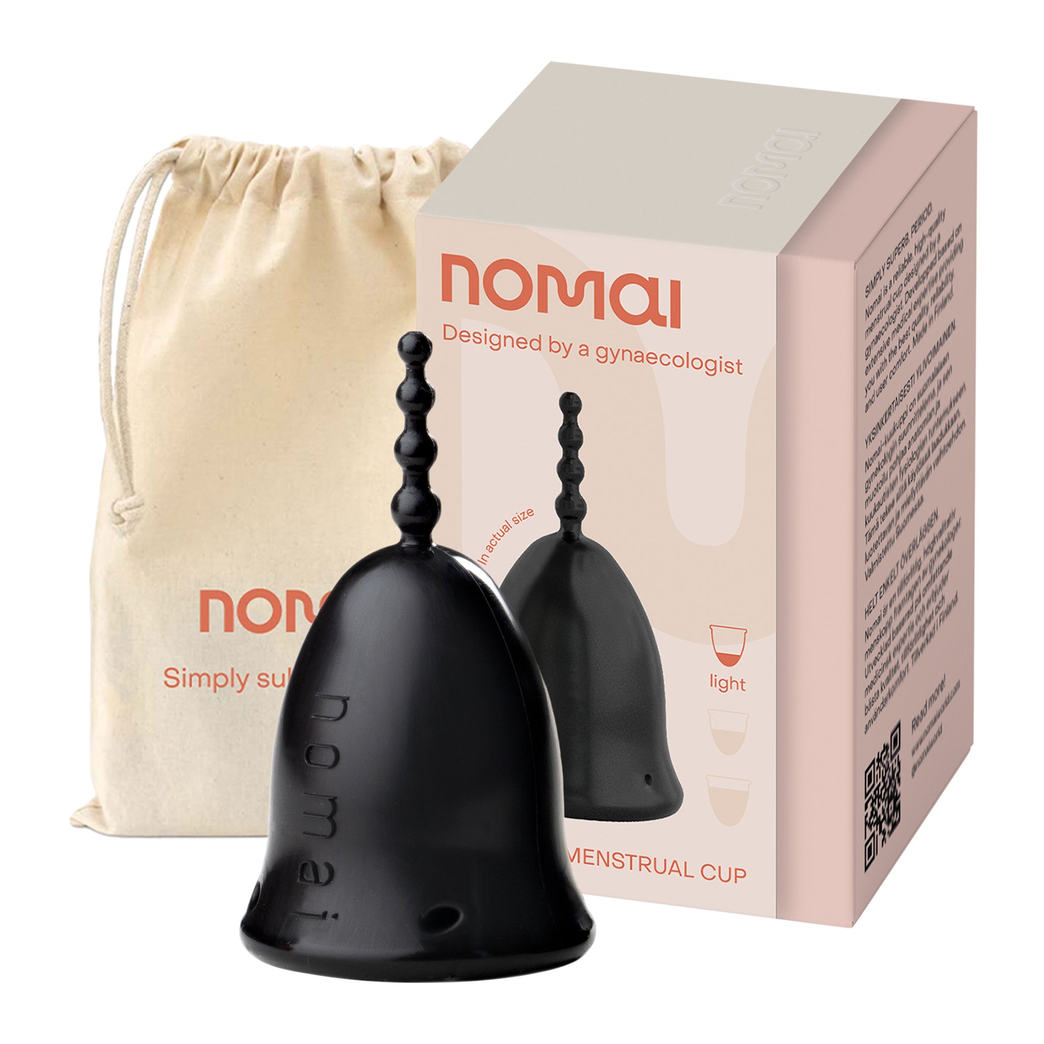 Musta Nomai-kuukuppi light flow sopii niukkaan vuotoon - suomalaisen gynekologin suunnittelema kuukuppi on luotettava, huoleton, huomaamaton ja todella mukava kuukautissuoja.