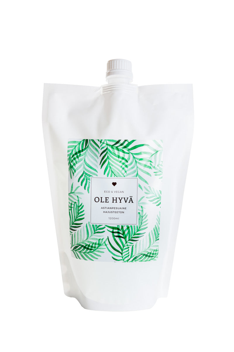 Raikas ja ekologinen Ole Hyvä -astianpesuaine pesee astiat puhtaiksi ja kirkkaiksi luontoa vahingoittamatta ja on täysin biohajoavaa. Tämä tehokas astianpesuainetiiviste on hajuton ja pakattu reilunkokoiseen täyttöpussiin.