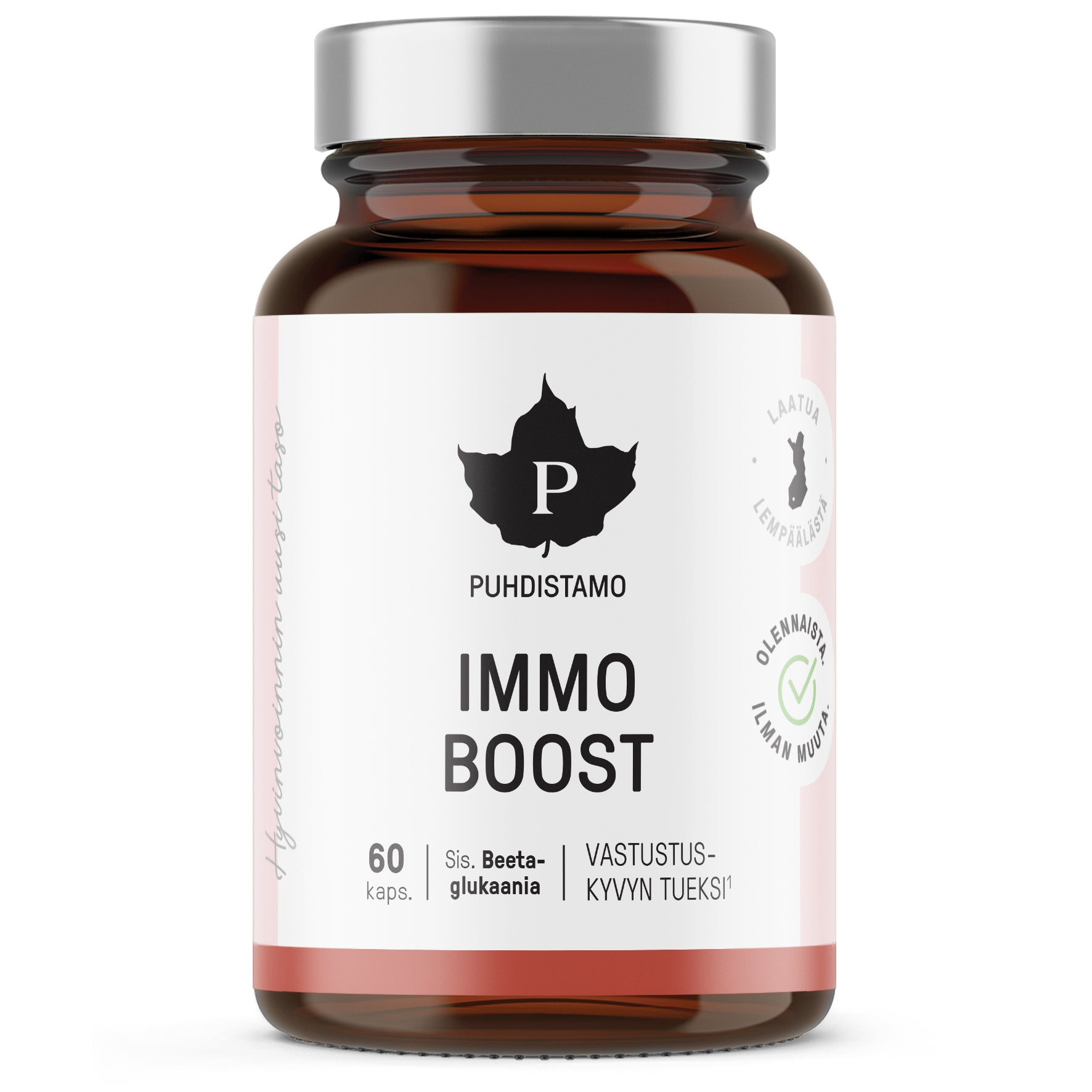 Puhdistamon ImmoBoost on tehokas vastustuskykyä tukeva yhdistelmävalmiste, joka sopii ympärivuotiseen käyttöön.