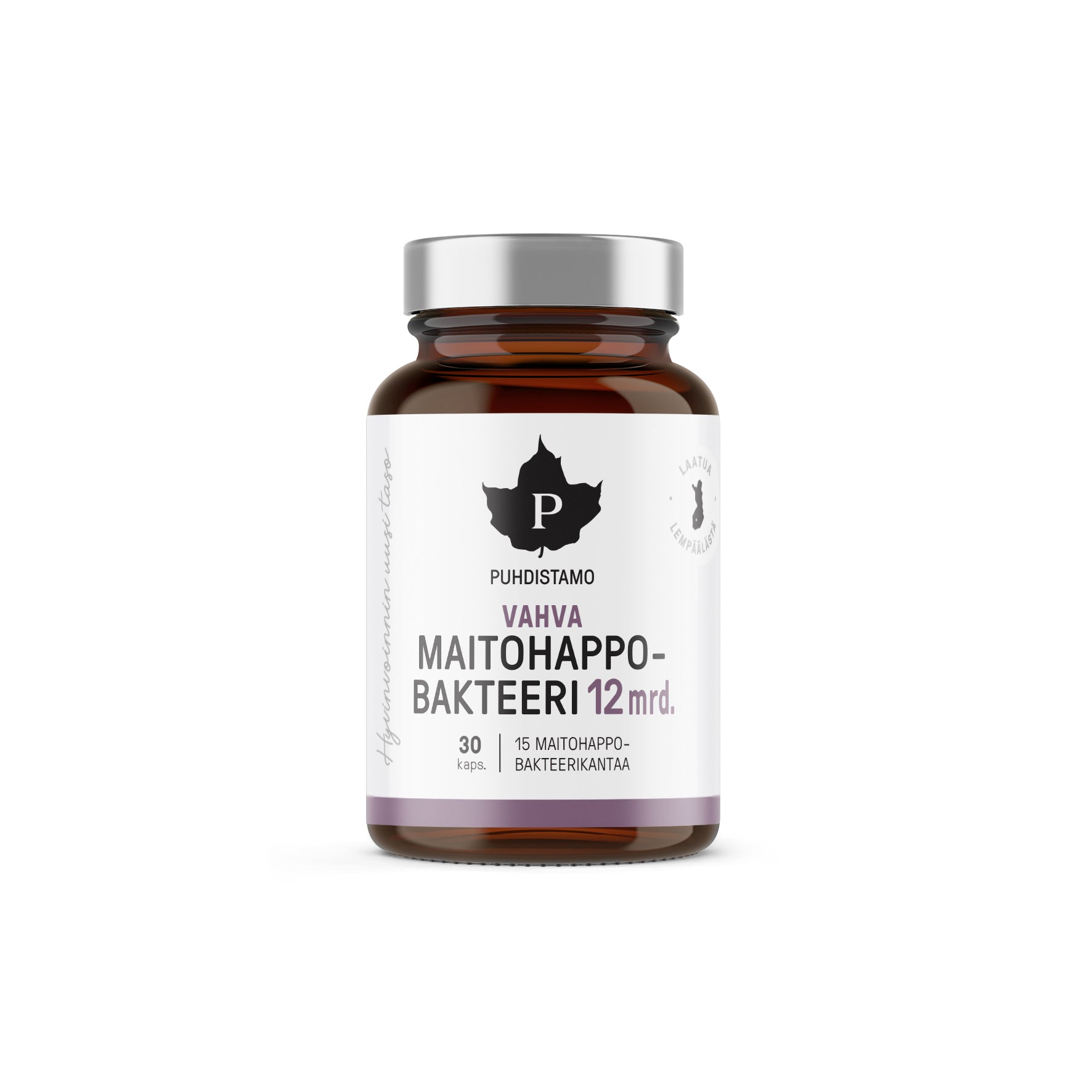 Puhdistamon Vahva Maitohappobakteeri on huikean monipuolinen maitohappobakteerivalmiste. Vahva Maitohappobakteeri sisältää 15 tunnettua bakteerikantaa sekä mahtavat 12 miljardia maitohappobakteeria yhdessä kapselissa.