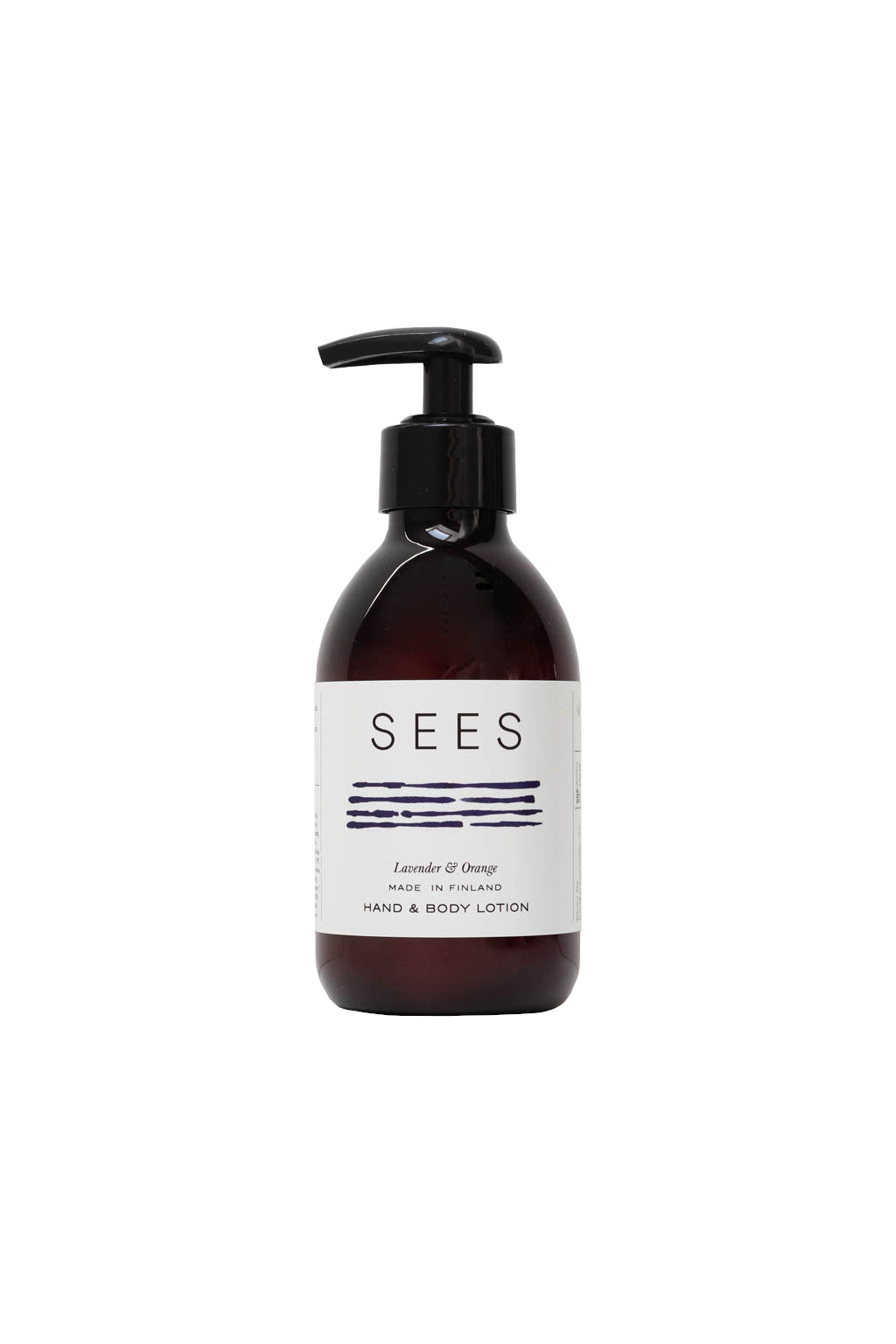 Kotimainen SEES Käsi- ja vartalovoide, Laventeli-appelsiini tarjoaa tehokosteutta ja ylellisen pehmeää tunnetta käsille ja koko vartalolle. Voide imeytyy nopeasti ja tarjoaa oitis helpotuksen kuivalle iholle.
