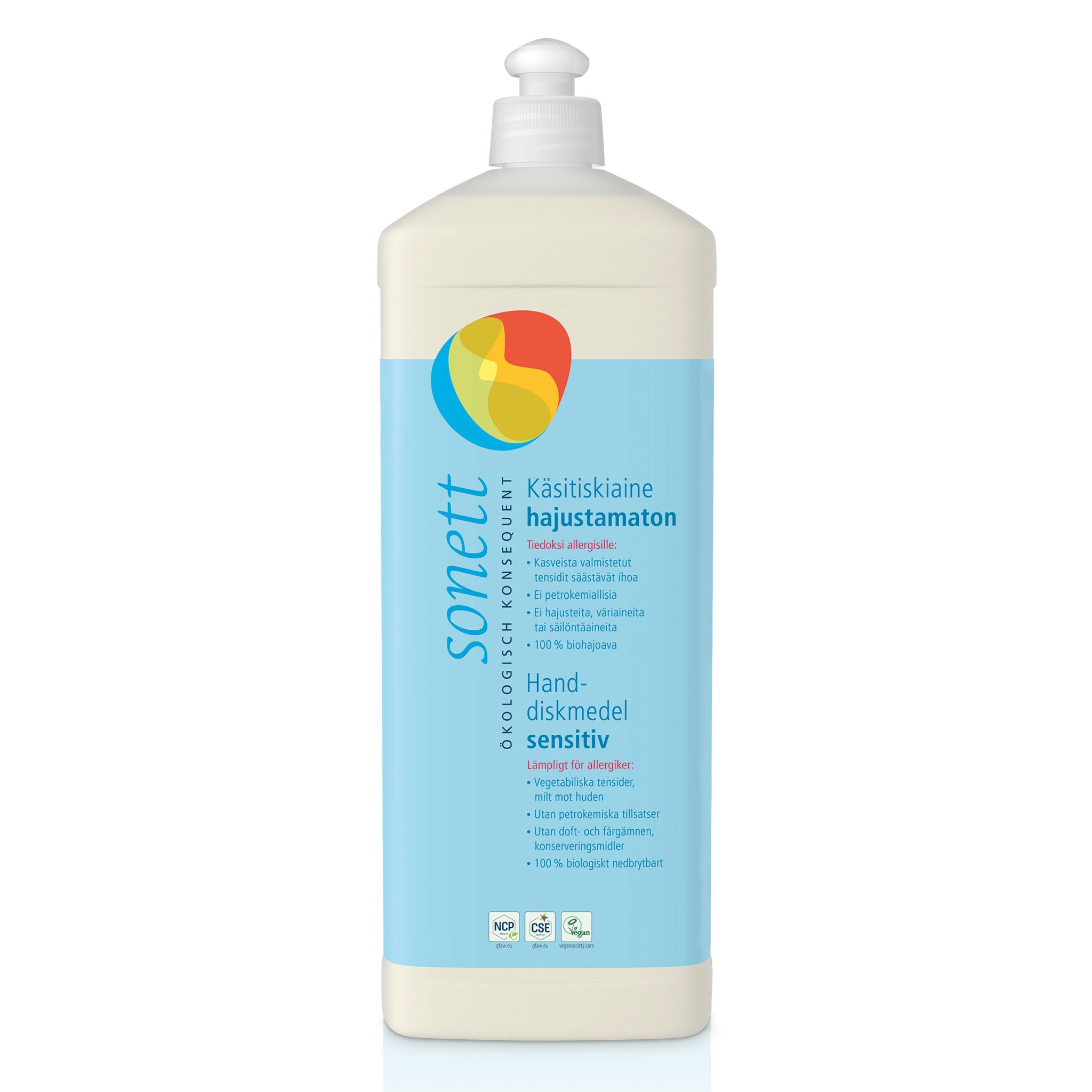 Sonettin hajustamaton, biohajoava käsitiskiaine tiskaa tehokkaasti rasvan ja lian jättäen jälkeensä pelkkää puhtautta. Nauti puhtaudesta ilman ylimääräisiä tuoksuja, luontoa kunnioittaen.