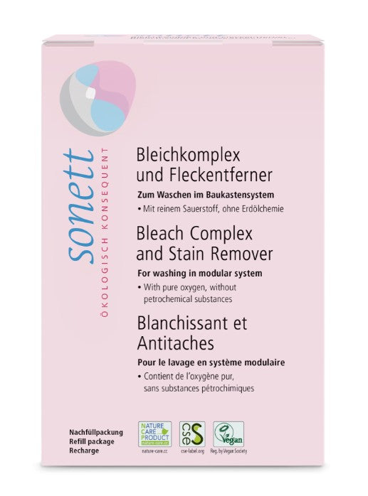 Luonnollinen natriumperkarbonaatti hajoaa käytön aikana hapeksi, vedeksi ja soodaksi – biohajoaminen alkaa jo pesun aikana. Ei sisällä keinotekoisia kirkasteita, hajusteita, entsyymejä eikä petrokemiallisia ainesosia. Täysin vegaaninen ja Nature Care Product -sertifioitu.