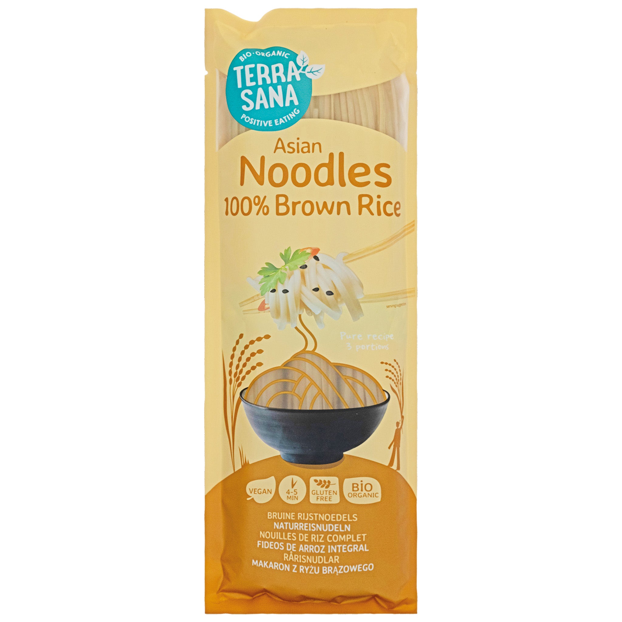 Terrasanan Täysjyväriisinuudeli on herkullinen ja gluteenittomat nuudeli, joka on valmistettu luonnonmukaisesti viljellystä täysjyväriisistä ja vedestä. Ei mitään muuta. Maukkaat nuudelit valmistuvat viidessä minuutissa. Riisinuudelit sopivat täydellisesti kasvisruokien, merilevien, lihan, kalan kanssa. Riisinuudelit ovat oivallisia myös japanilaisten mausteiden, kuten mison, tamarin ja seesamiöljyn kanssa.
