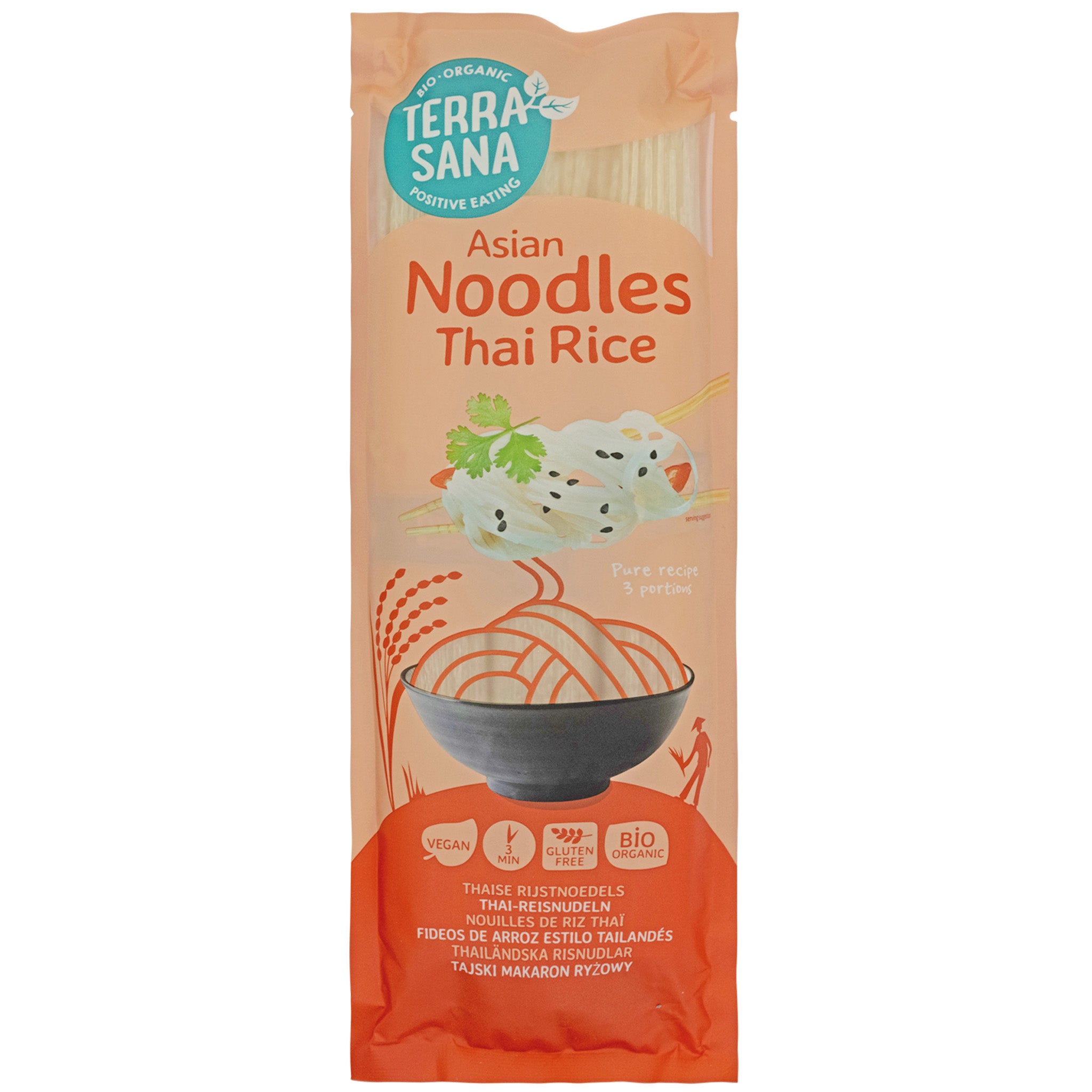 Terrasana Thairiisinuudelit on valmistettu luomuviljellystä valkoisesta riisistä. Nuudeleilla on ohut rakenne ja ne toimivat maultaan oivallisesti japanilaisen keittiön suolaisten ja umami-makujen kanssa. Terrasanan Thairiisinuudelit ovat 100 % gluteenittomia, joten kaikki voivat nauttia näistä nuudeleista.