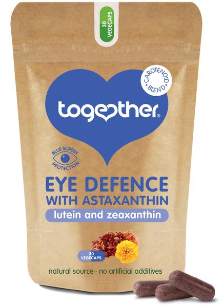 Together Eye Defence, Silmien hyvinvointi 30 kpl on tehokas yhdistelmä erilaisia karotenoideja silmiesi hyvinvoinnin tueksi. Tehoaineina toimii luteiini, zeaksantiini ja astaksantiini.