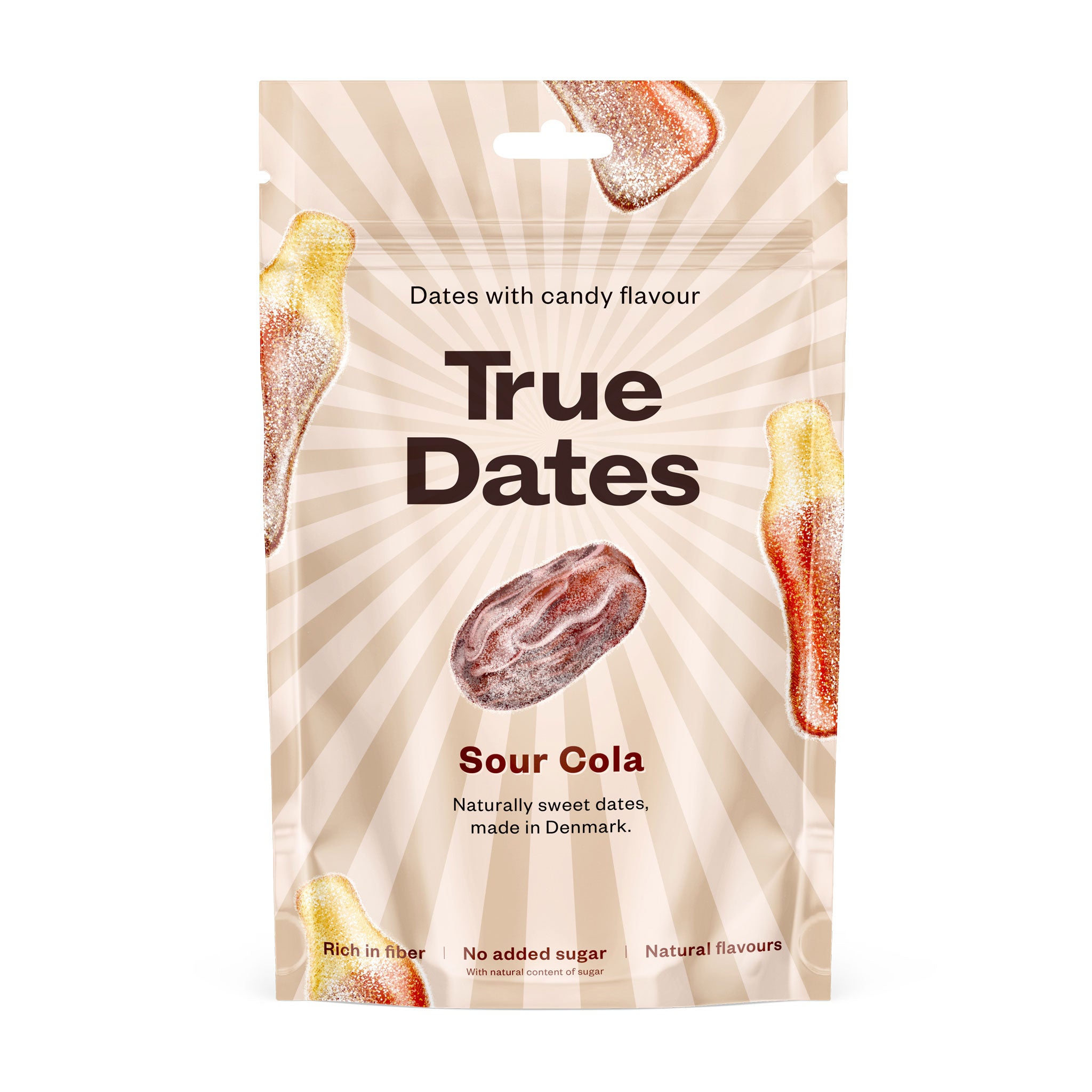 True Dates Kirpeä kola -taatelimakeinen on osa True Gumin Paremmat välipalat -sarjaa. Taatelin luonnollinen makeus yhdistyy rakastettuihin karkkiklassikoiden makuihin, jotka on luotu luonnollisista raaka-aineista.
