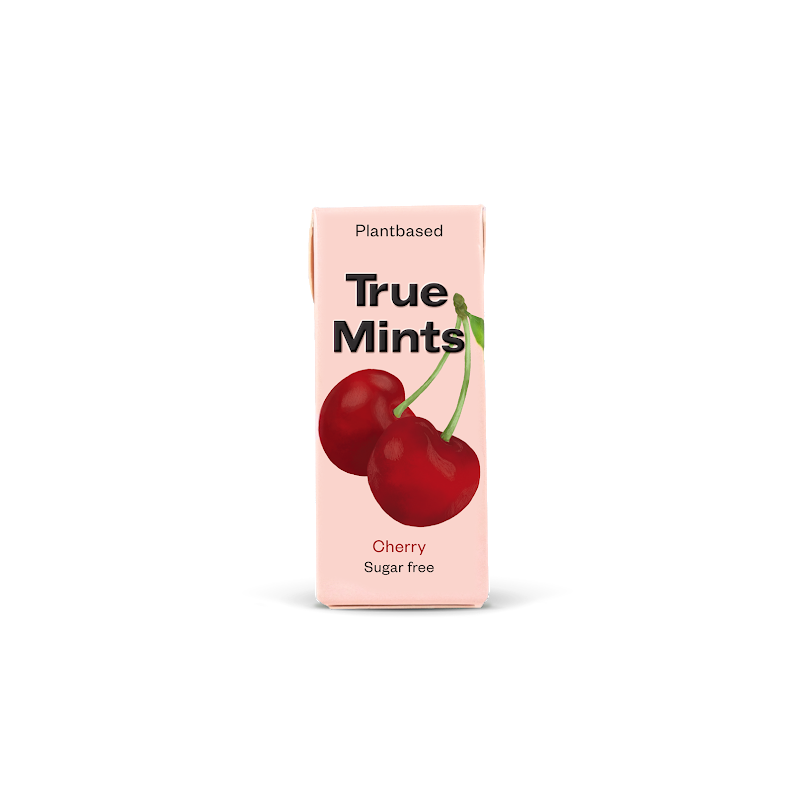 True Gum, True Mints ksylitolipastilli, kirsikka, 13 g. True Mints ksylitolipastillit ovat hampaita helliviä ja suuta raikastavia vegaanisia pastilleja, jotka sisältävät vain luonnollisia makuja, eikä ollenkaan mitään ikäävyyksiä, kuten keinotekoisia makeutusaineita, esimerkiksi aspartaamia.