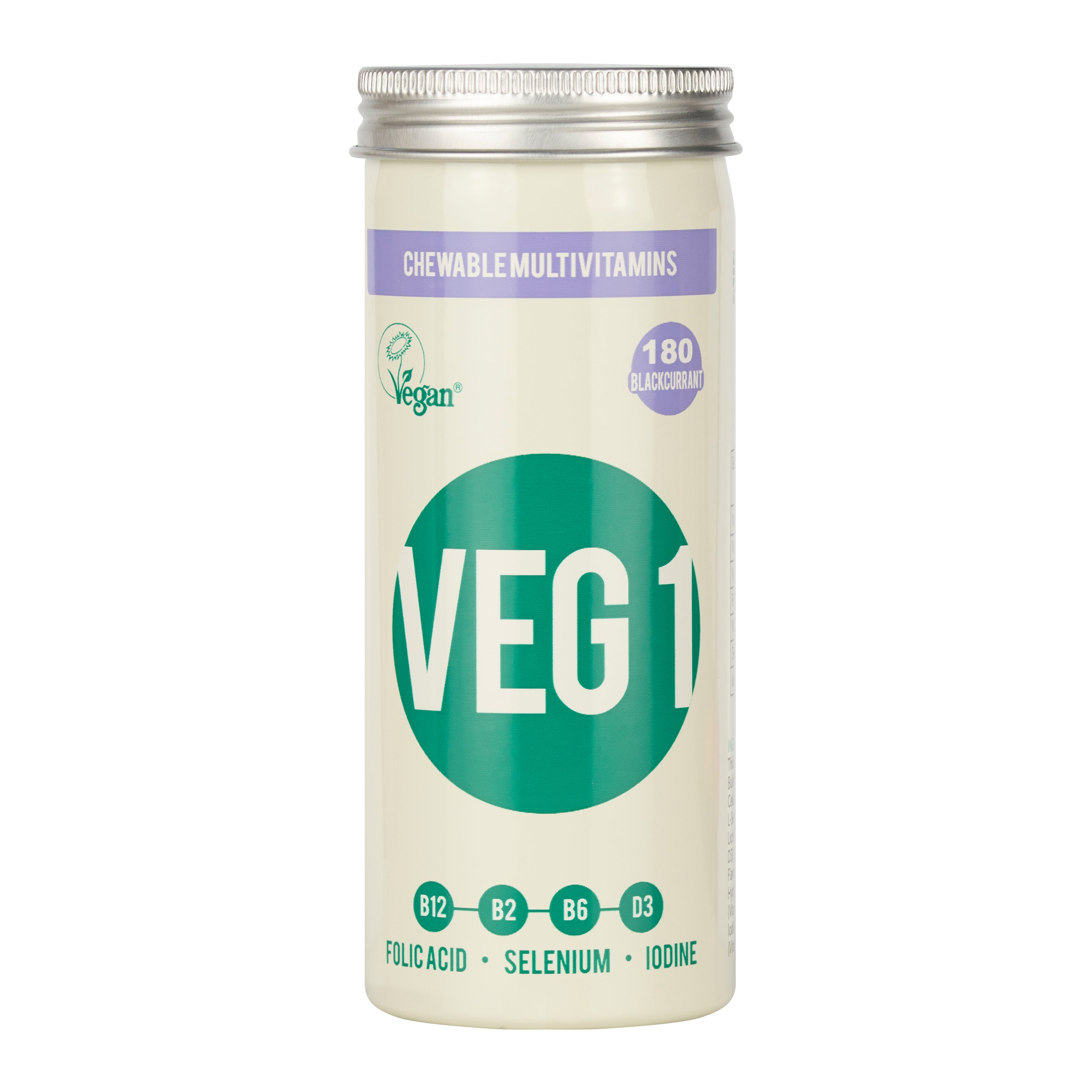 VEG1 Blackcurrant on huolellisesti tasapainotettu vegaaninen monivitamiini, joka sisältää EU:n suositteleman päivittäisannoksen B2-, B6-, B12- ja D-vitamiinia sekä foolihappoa, jodia ja seleeniä. Mustaherukan makuinen purutabletti on helppo nauttia ilman vettä.