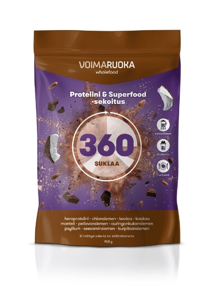 "Suosittelen lämpimästi Wholefoodsin 360 -proteiinijauheita, aivan huippu hyvänmakuisia proteiinilisiä koko perheen käyttöön. Tämä on ainut proteiinilisä, jota nirppanokka tyttäreni suostuu syömään isolla ilolla. Taikajauhe, joka taipuu monenlaiseen maittavaan muotoon, protskupirtelöksi, välipalaksi jne. Niin näppäräkäyttöinen, jotta lapsikin osaa siitä valmistaan itselleen maittavan välipalan koulun jälkeen. "